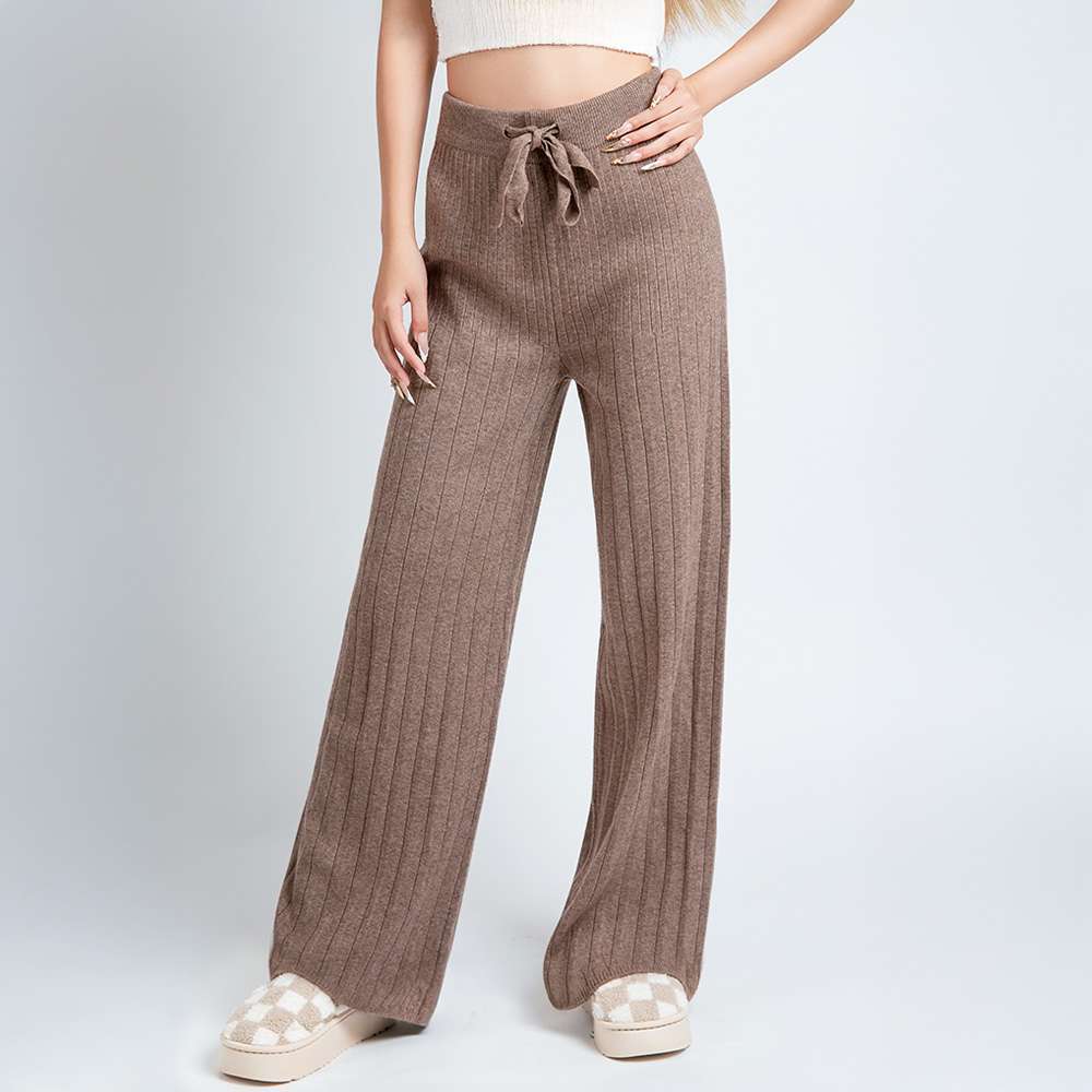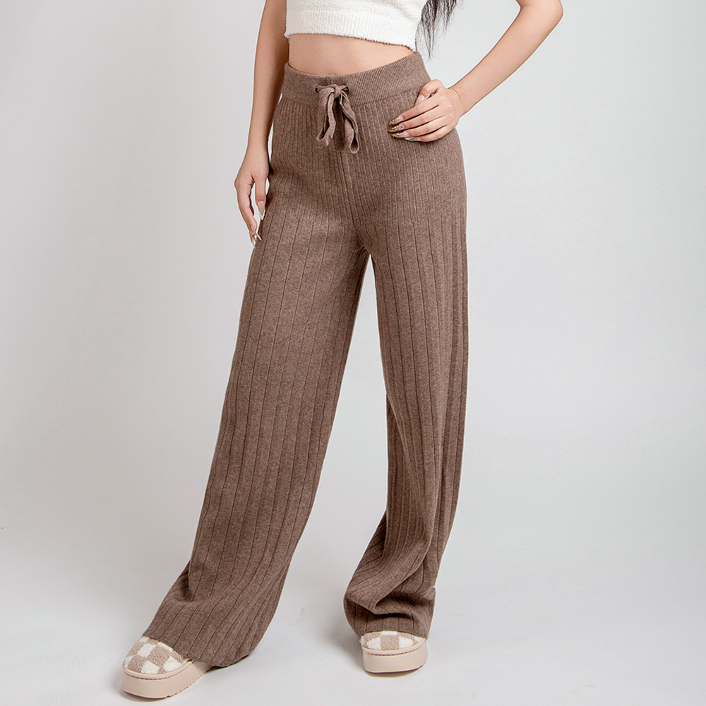• Stay cozy and chic in these high-waist ribbed knit lounge pants. Featuring a flattering wide-leg silhouette and an adjustable tie waist, they offer the perfect balance of comfort and effortless style—ideal for relaxing at home or creating a relaxed, casual look.