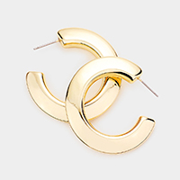 Patterned Flower Dangle Metal Hoop Pin Catch Earrings