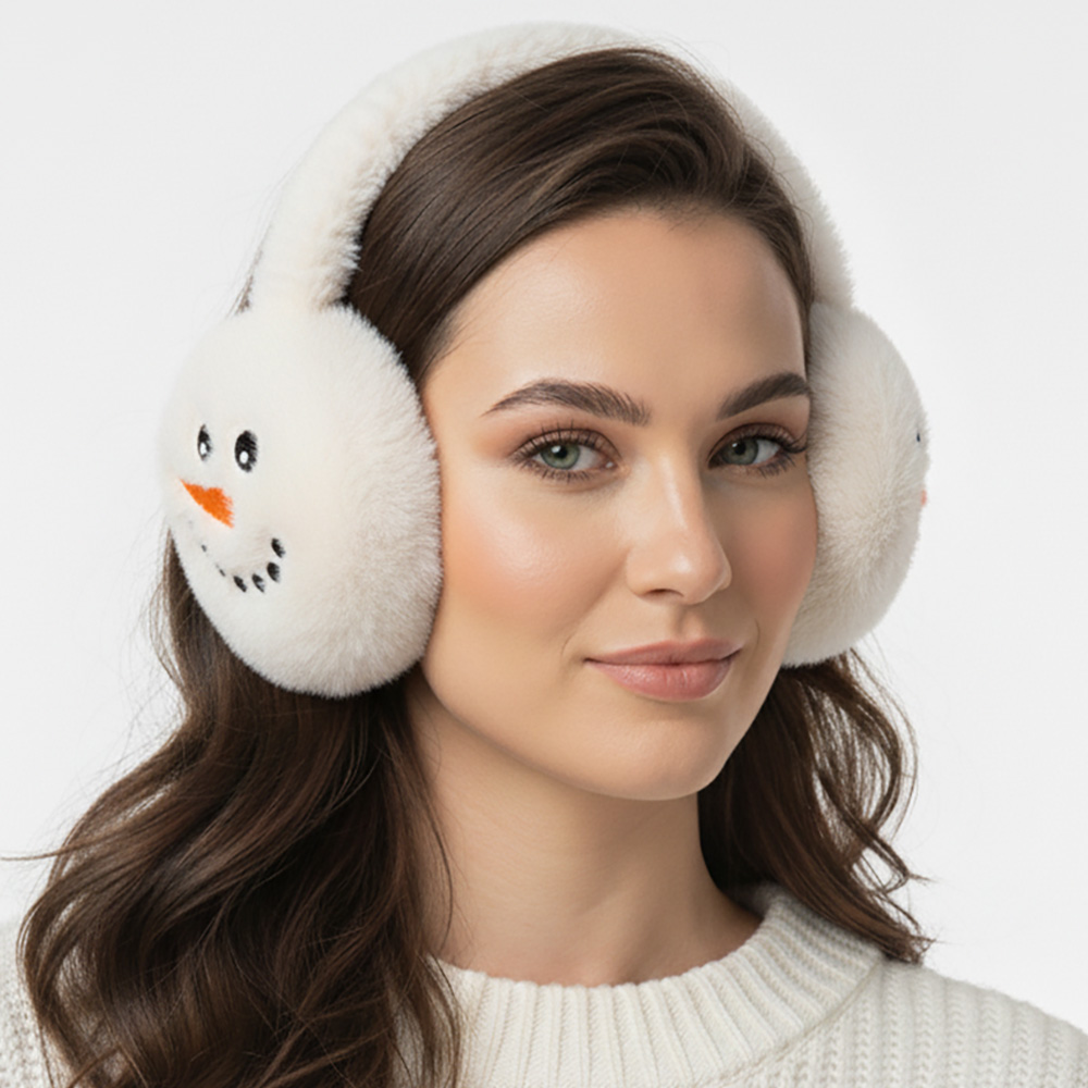 Details • Size : One Size • Add a cheerful touch to your winter style with these plush earmuffs featuring an embroidered snowman design. Soft, comfortable, and warm, they offer playful seasonal charm while keeping your ears protected from the cold all season long.