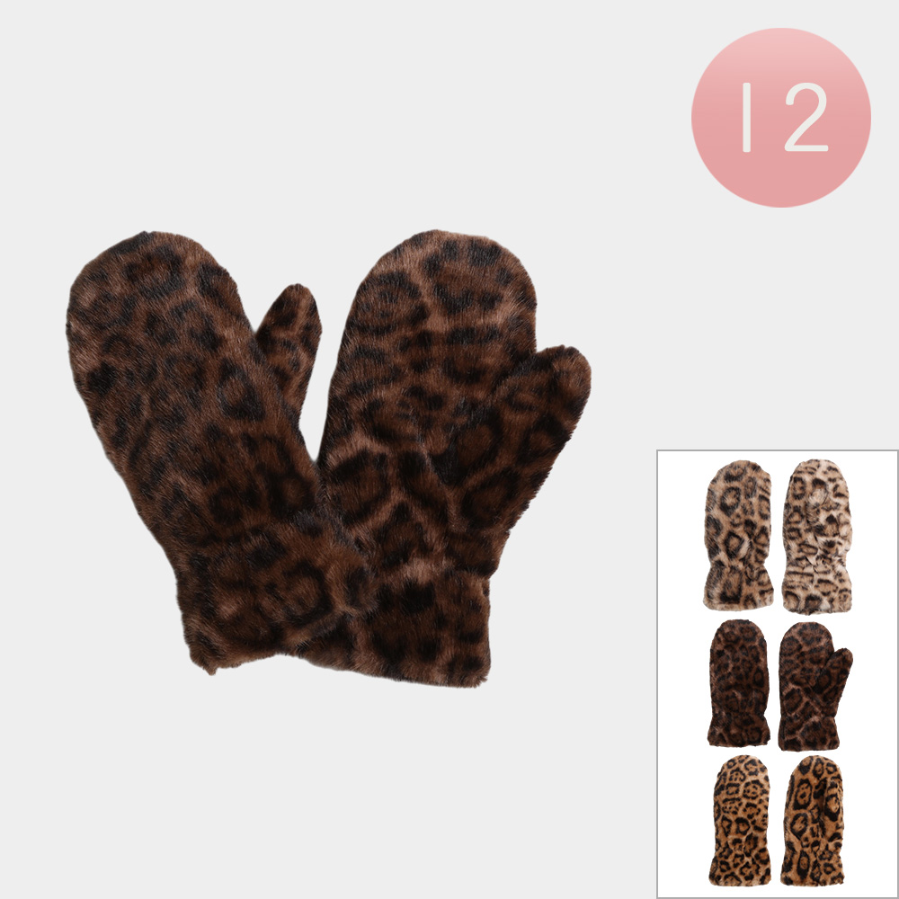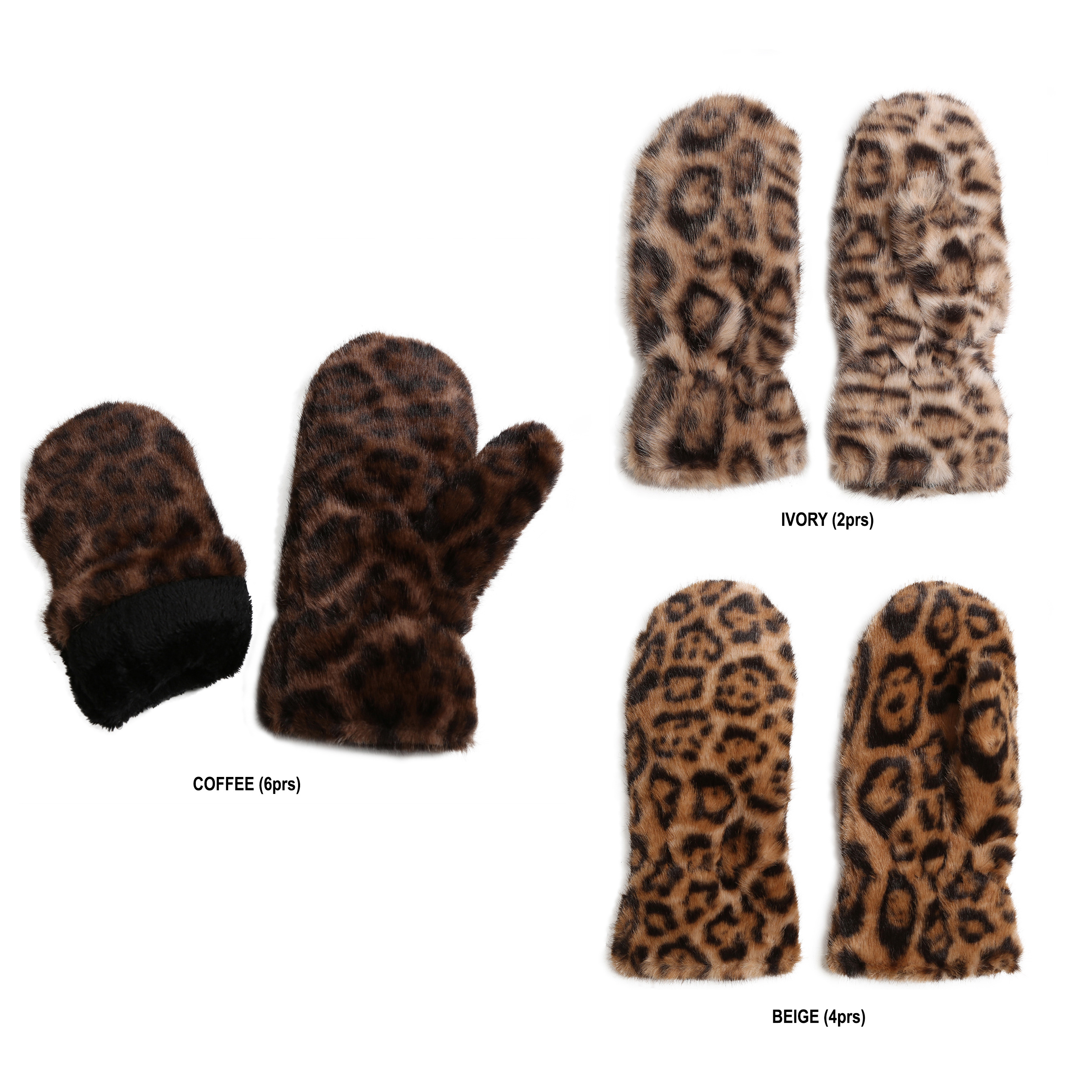 Details • Size : One Size • Material : 100% Faux Fur • Stay stylish and cozy with faux fur animal print mittens. Pack of 12 pairs in assorted bold prints, ideal for winter fashion, gifting, and resale.