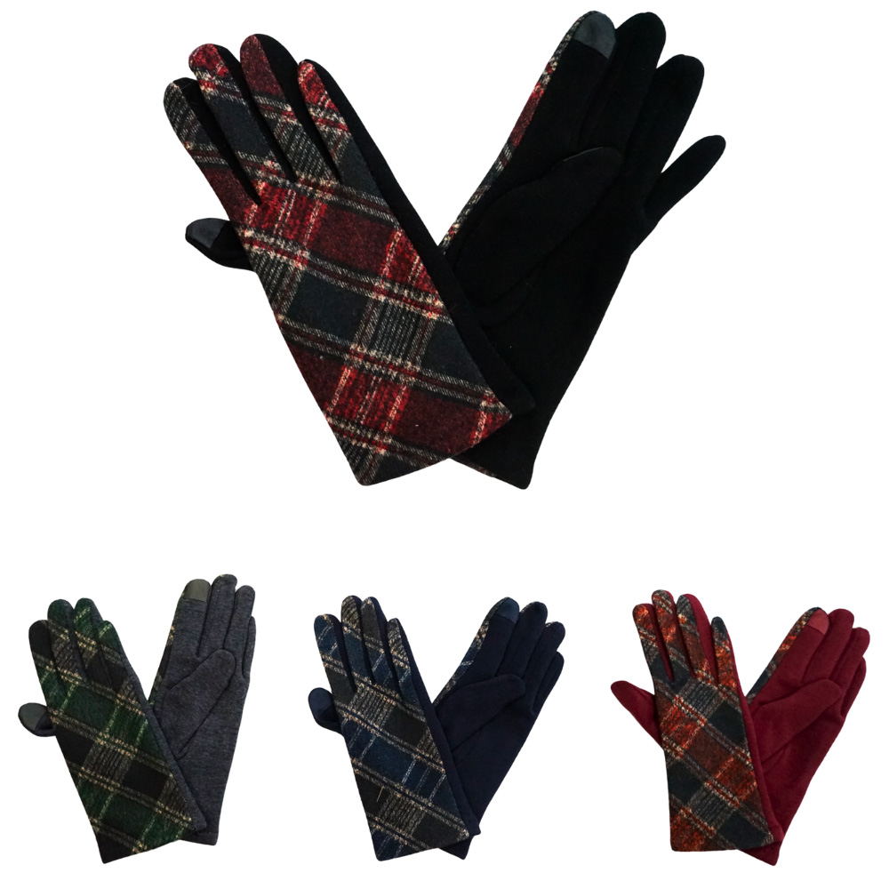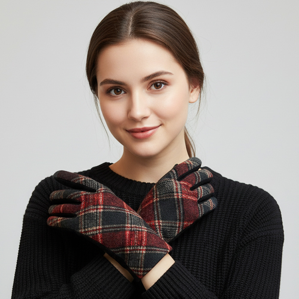 Details • Size : One Size • Material : 60% Polyester, 30% Cotton, 3% Spandex • 4Pairs BLACK / 3Pairs RED / 3Pairs BLUE / 2Pairs GREEN • Stay stylish and connected with these plaid smart touch gloves, designed for winter warmth and touchscreen use. Featuring a cozy fit and classic plaid patterns in assorted colors, they’re perfect for daily wear, driving, or gifting.