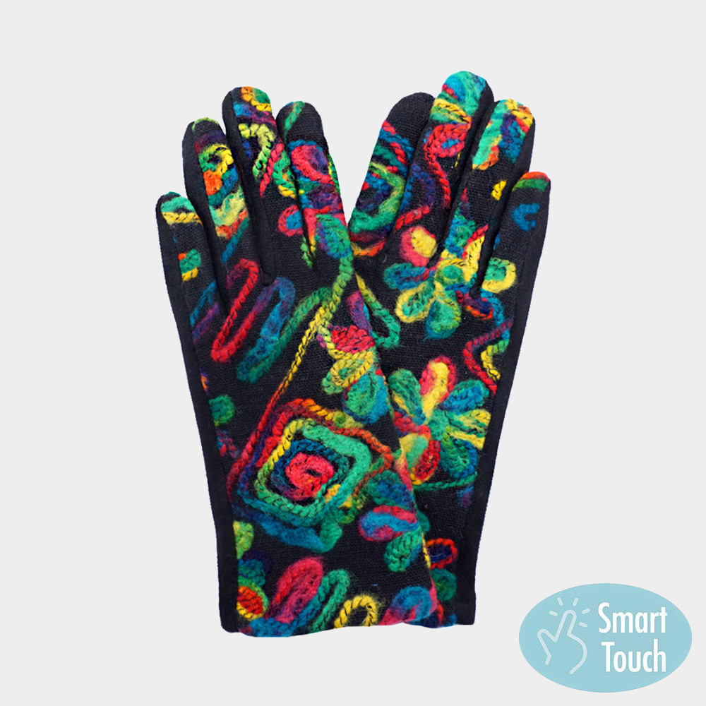 Abstract Yarn Embroidered Smart Touch Gloves