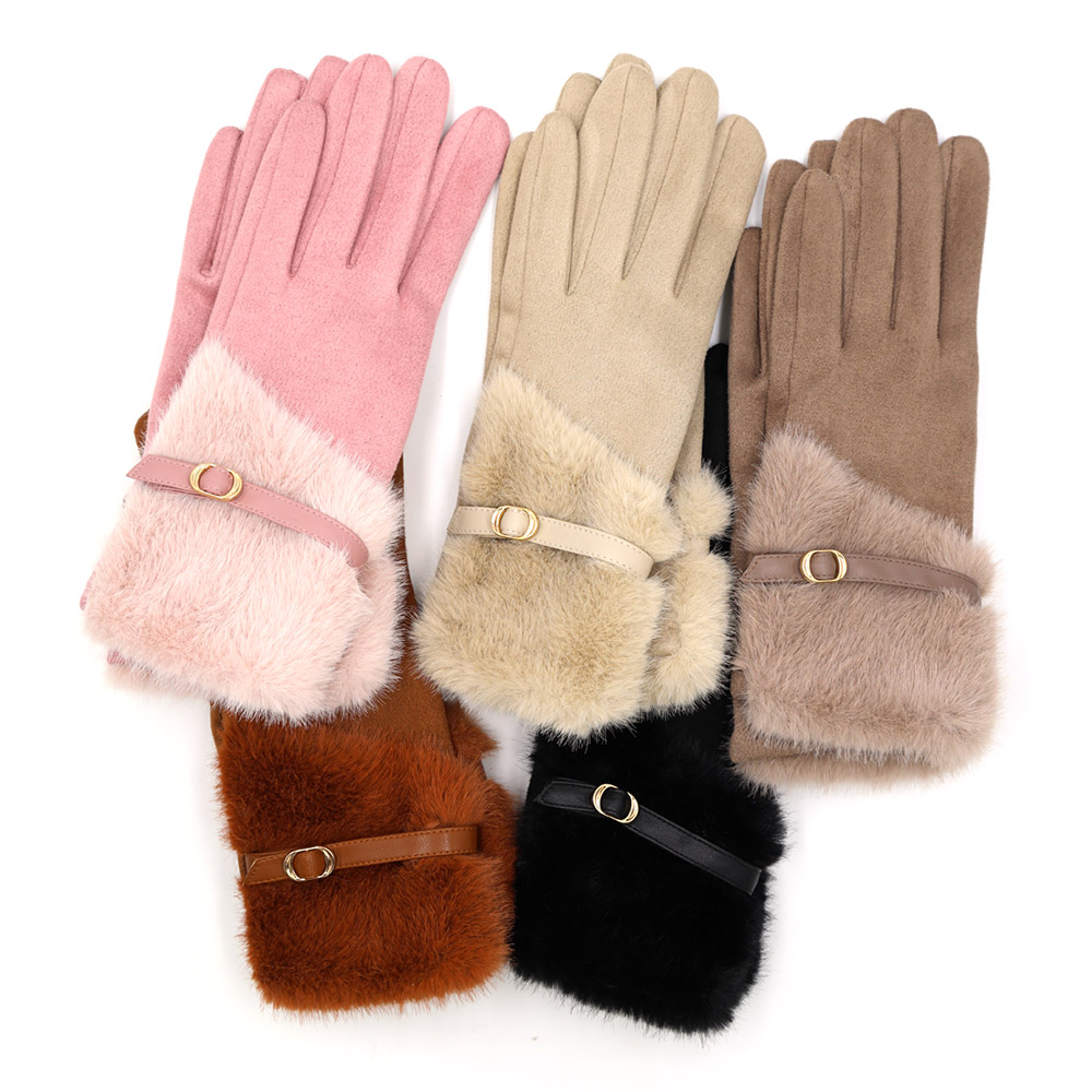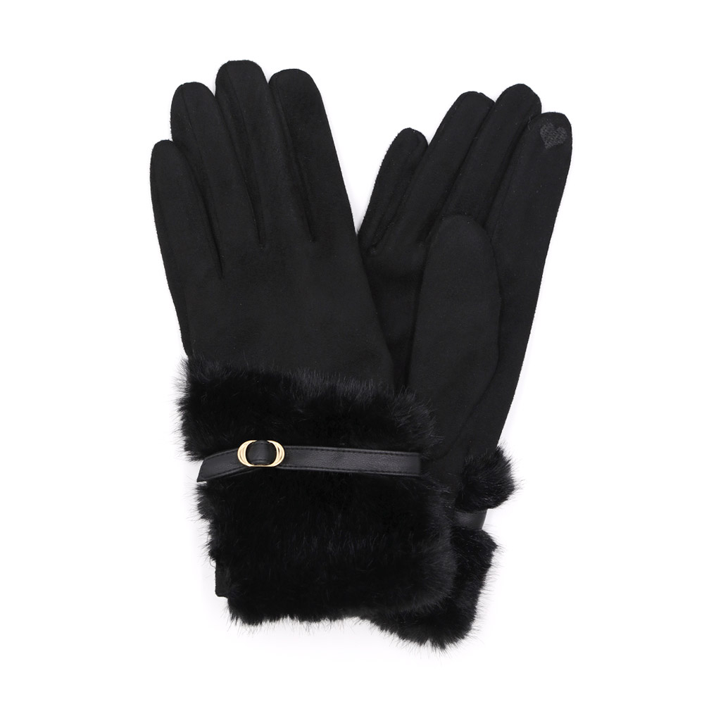 Faux Fur And Strap Cuff Smart Touch Gloves