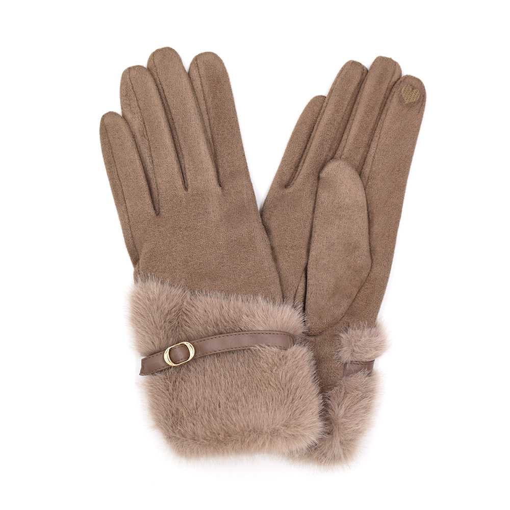 Faux Fur And Strap Cuff Smart Touch Gloves