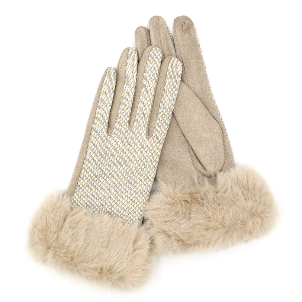 Faux Fur Cuff Mixed Color Smart Touch Gloves