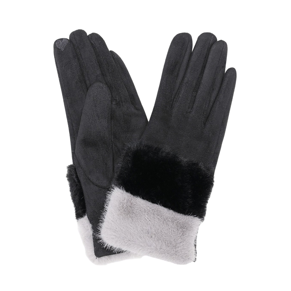 Details • Size : One Size • Material : 100% Polyester • Smart Touch • Warm gloves designed with soft faux fur cuffs and smart touch fingertips for phone use. A cozy yet stylish accessory, perfect for keeping hands comfortable in cold weather while adding a chic seasonal finish to everyday outfits.