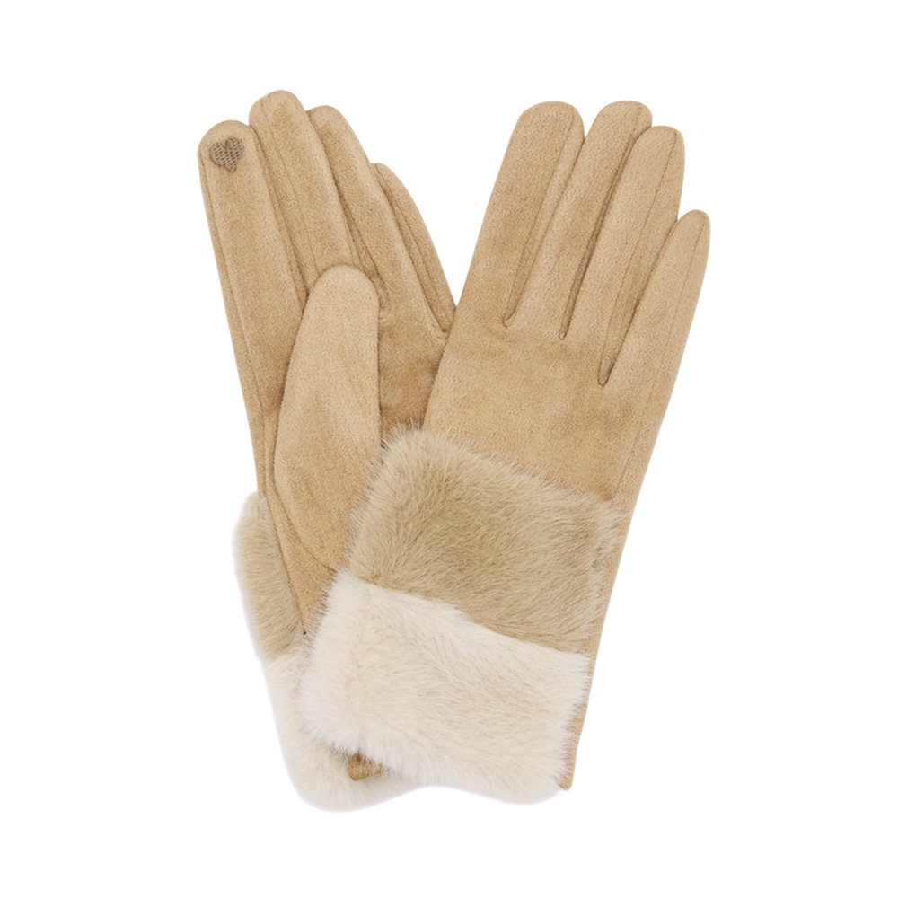 • Warm gloves designed with soft faux fur cuffs and smart touch fingertips for phone use. A cozy yet stylish accessory, perfect for keeping hands comfortable in cold weather while adding a chic seasonal finish to everyday outfits.