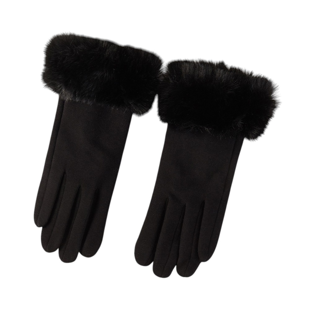 Details • Size : One Size • Smart Touch • Material : 100% Polyester • Sophisticated winter gloves designed with a soft plush fur cuff for added warmth and style. Perfect for cold weather, these gloves combine comfort and elegance, making them an ideal accessory for both casual outings and dressy occasions.