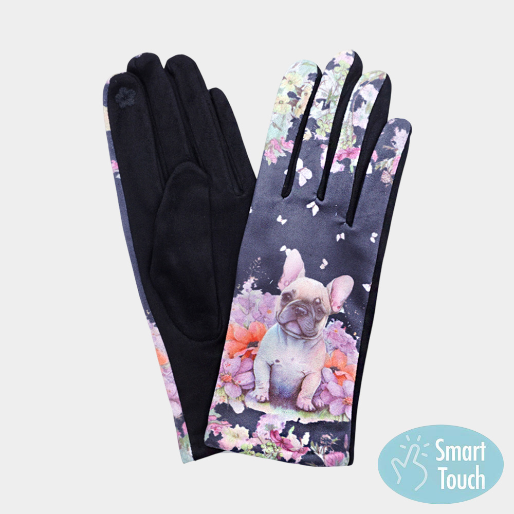 • Showcase your love for pets with these smart touch gloves featuring a charming French bulldog surrounded by vibrant floral details. Combining warmth, comfort, and touchscreen functionality, they’re a playful yet practical accessory for everyday use.