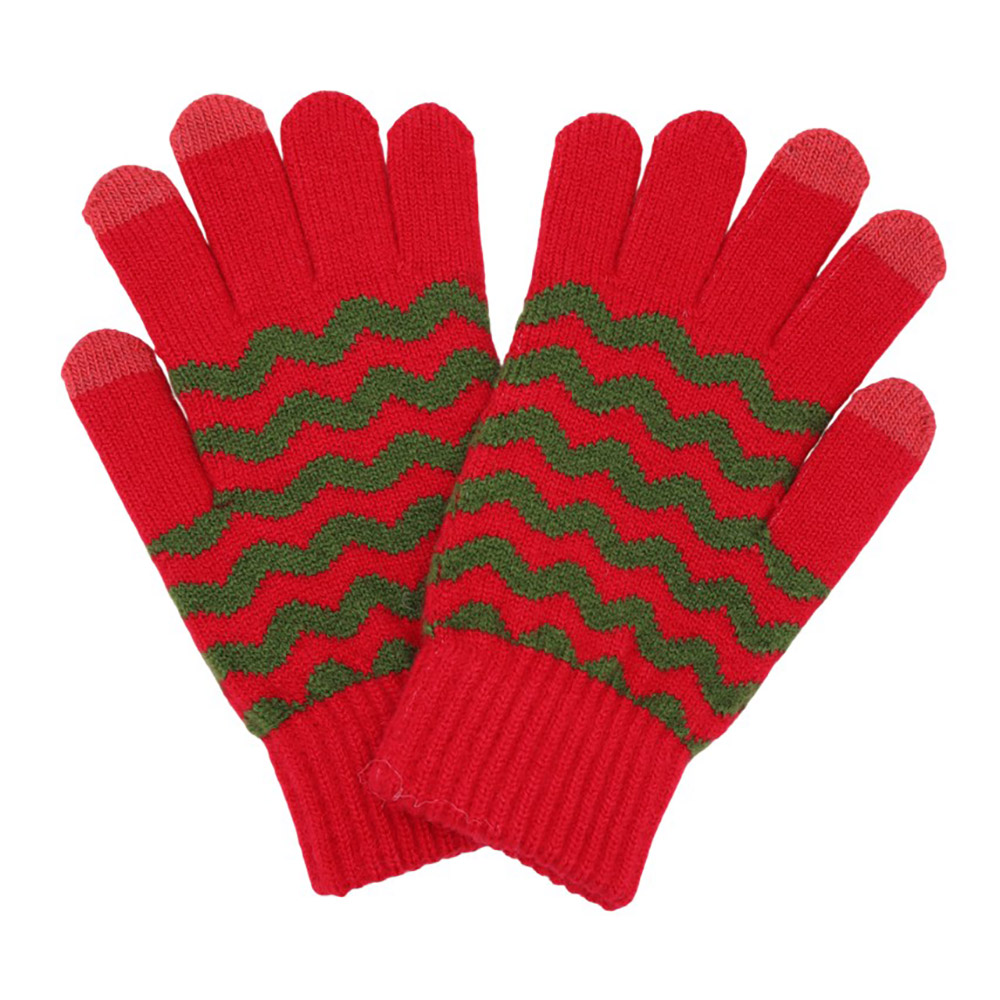 • Cozy knit touchscreen gloves with a bold wave pattern, perfect for winter days. Enjoy full mobile device use while keeping your hands warm and stylish with these functional and comfortable gloves.