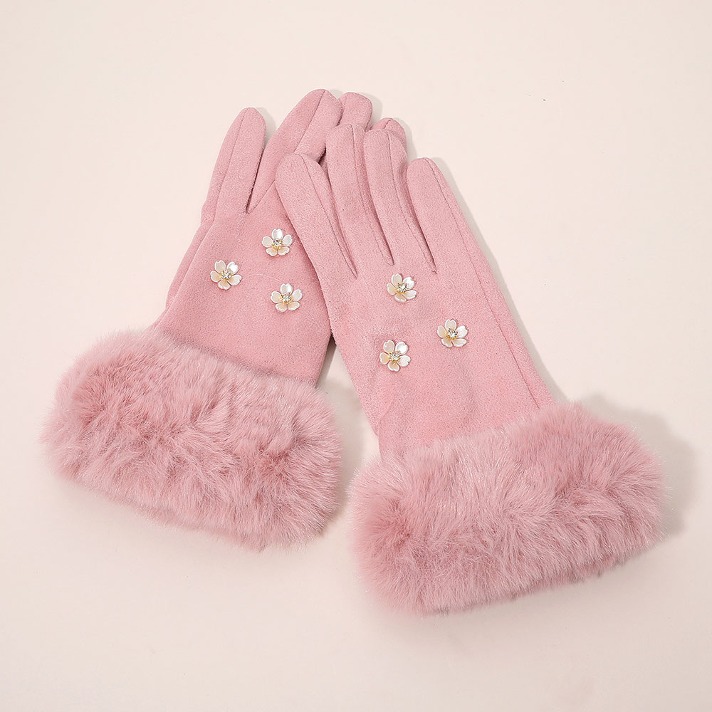 Details • Size : One Size (10" L) • Material : 100% Polyester • Smart Touch • Elegant smart touch gloves featuring faux fur cuffs and delicate floral embellishments for a chic, feminine touch. Designed for comfort and style, these gloves keep hands warm while allowing easy touchscreen use, perfect for everyday wear or adding flair to winter outfits.