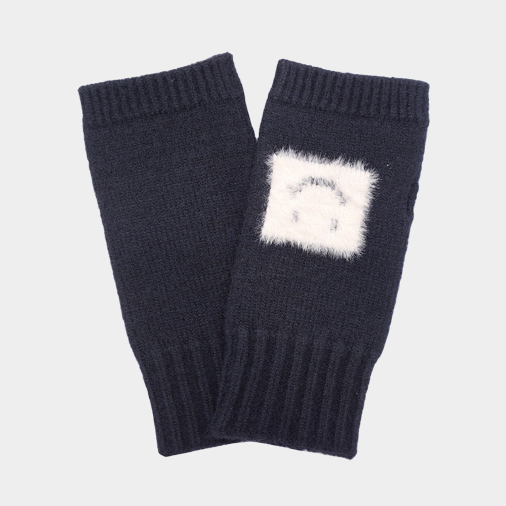 Details • Size : One Size • Material : 100% Polyester • Soft fingerless knit gloves featuring a playful smiley detail, designed for warmth and comfort while keeping your fingers free. Perfect for layering in cooler weather, they offer both practicality and casual charm for everyday wear.