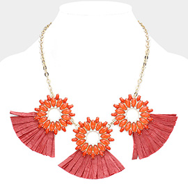 Textured Metal Acrylic Plate Ball Beaded Chandelier Statement Necklace