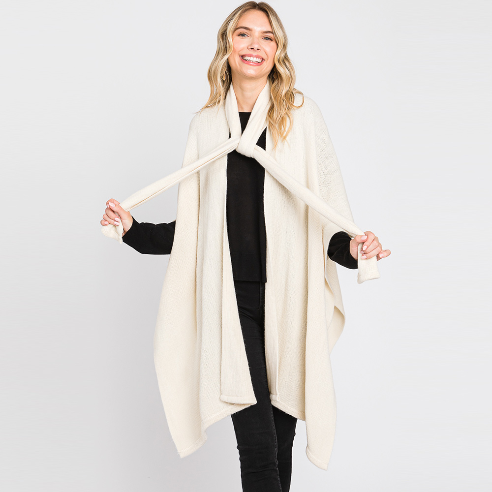 Details • Size : 37.5" X 63" • Material : 100% Acrylic • Stylish poncho wrap featuring an open front and matching scarf for added warmth and flair. Designed with a relaxed drape for comfort and elegance, this layering piece transitions seamlessly from casual to elevated looks.