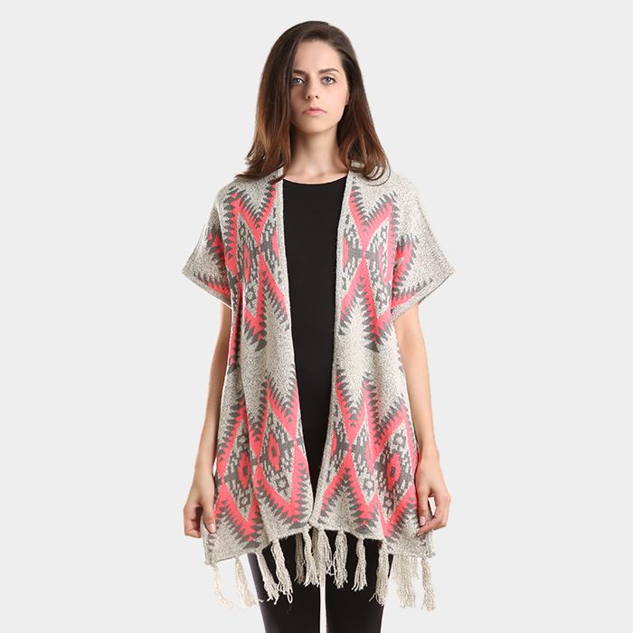 Chevron Zigzag Pattern Fringe Knit Cardigan