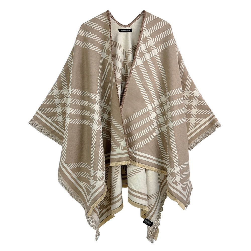 • Stay effortlessly stylish with this geometric pattern poncho featuring a timeless design and fringed hem. Its draped silhouette and modern detailing make it a versatile layering piece, adding refined charm and cozy elegance to both casual and chic ensembles.