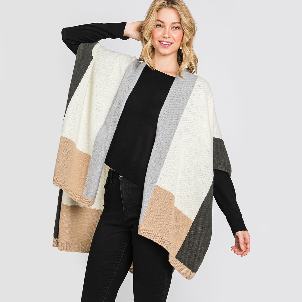 Multi Color Stripe Crochet Open Front Cover-Up Kimono Poncho