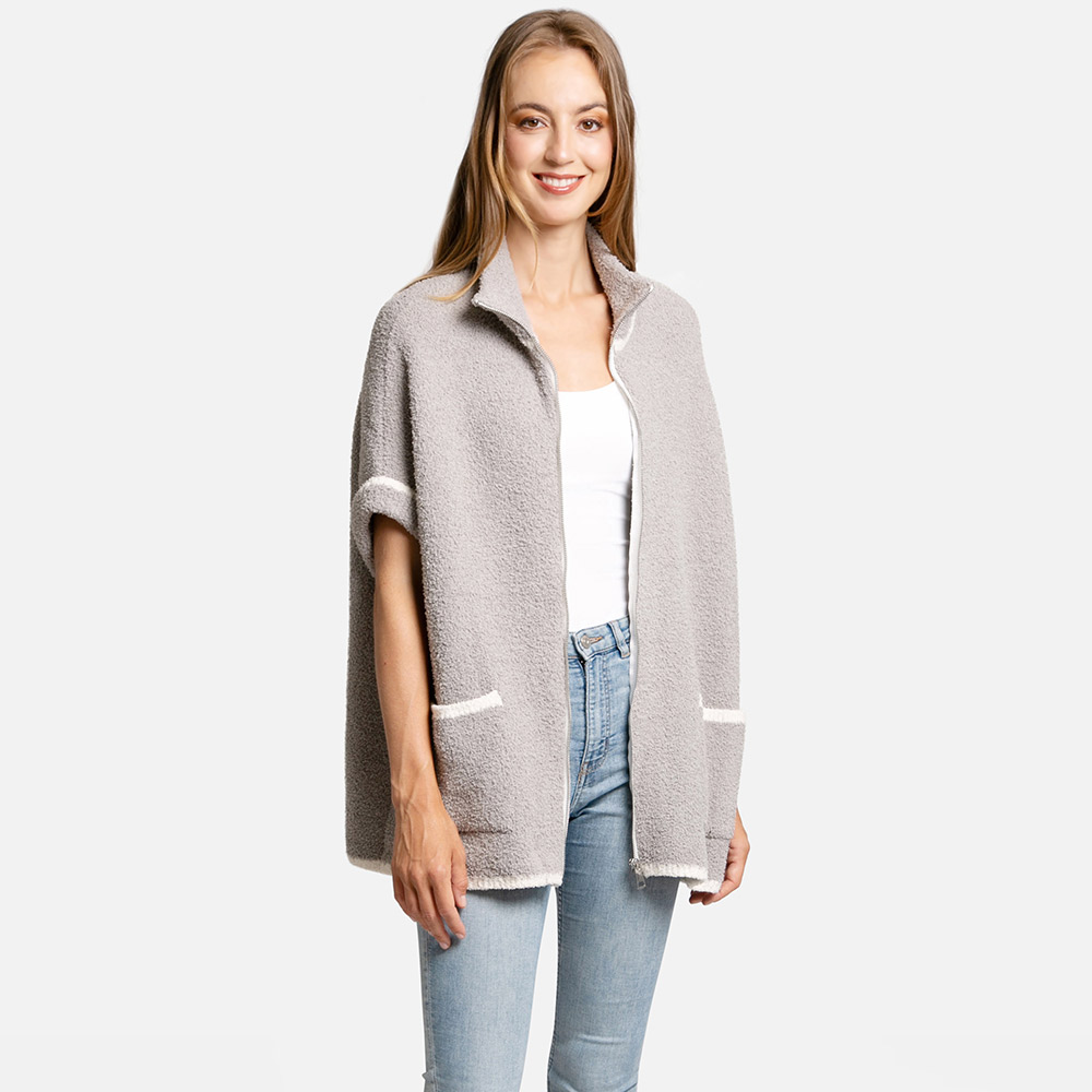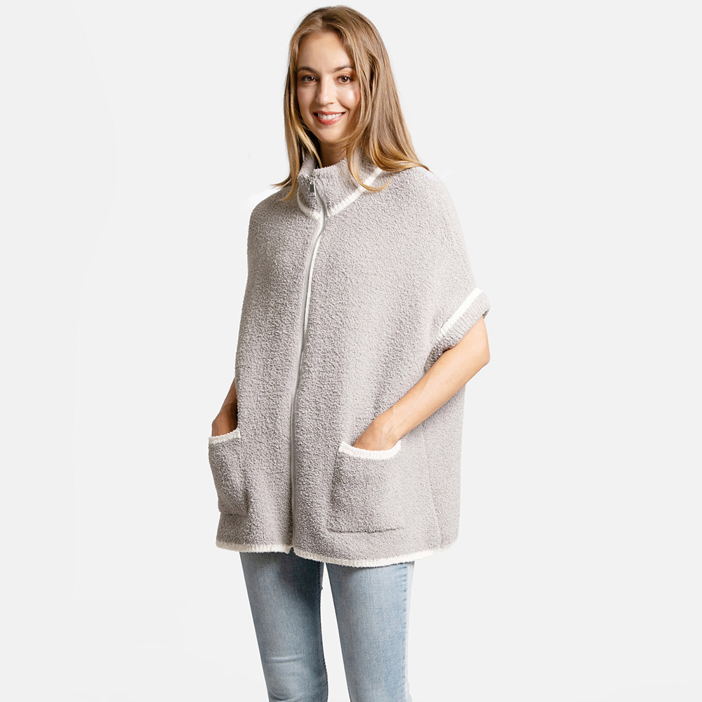 • Elevate your layering with this open-front cozy knit cape featuring convenient pockets and a relaxed silhouette. Perfect for transitional weather or lounging, this chic wrap combines warmth and effortless elegance.