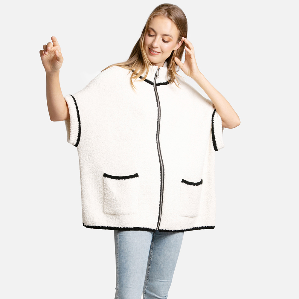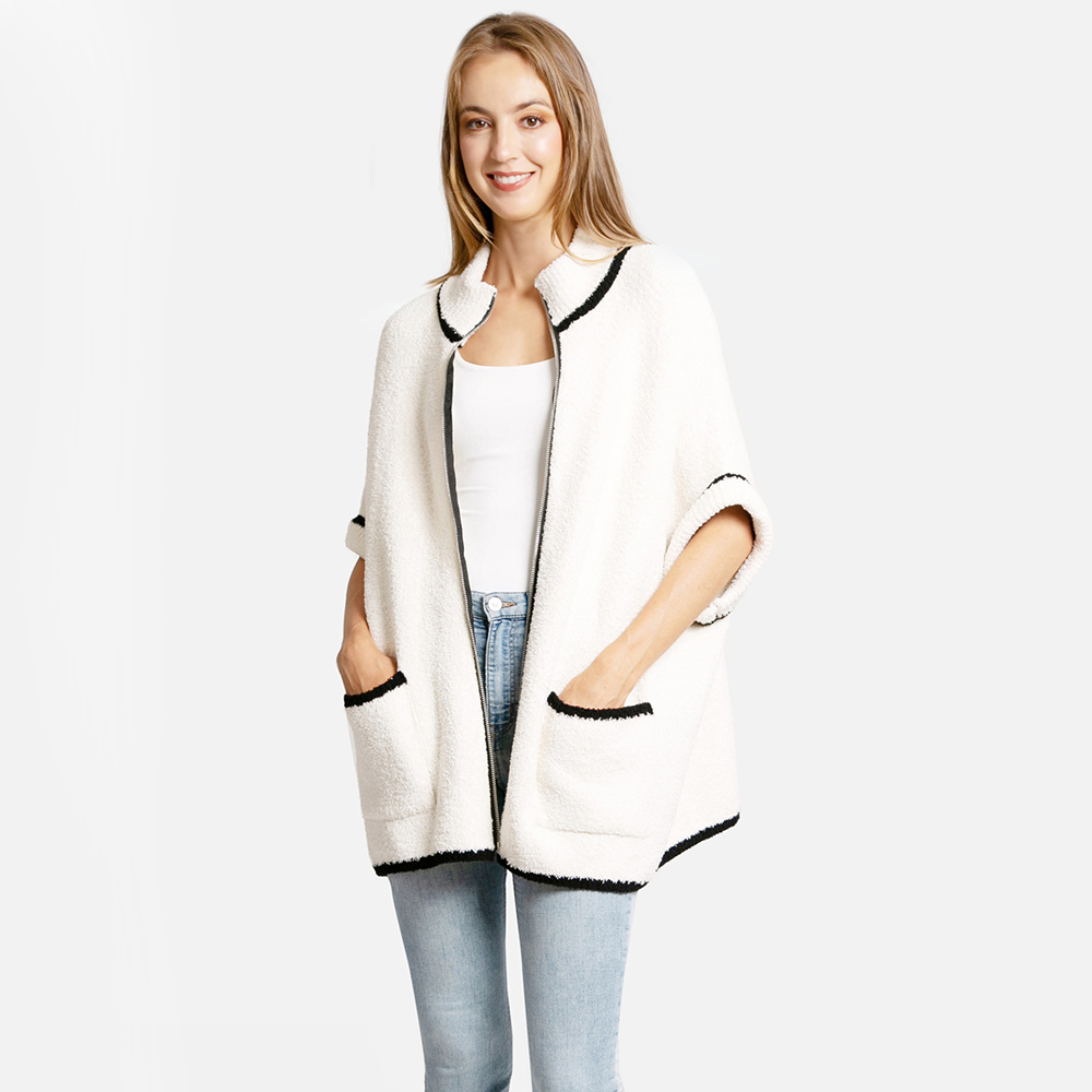 • Elevate your layering with this open-front cozy knit cape featuring convenient pockets and a relaxed silhouette. Perfect for transitional weather or lounging, this chic wrap combines warmth and effortless elegance.