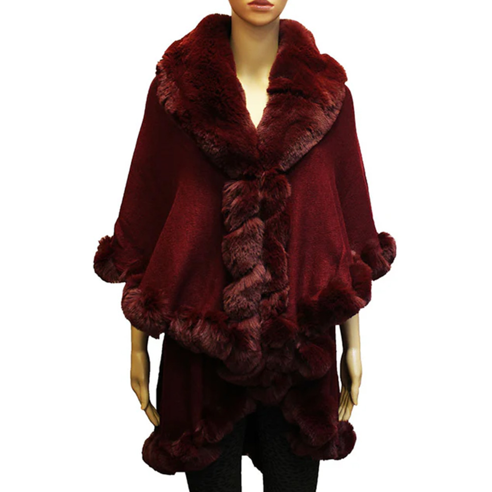 Elegant Faux Fur Trim Cape Poncho