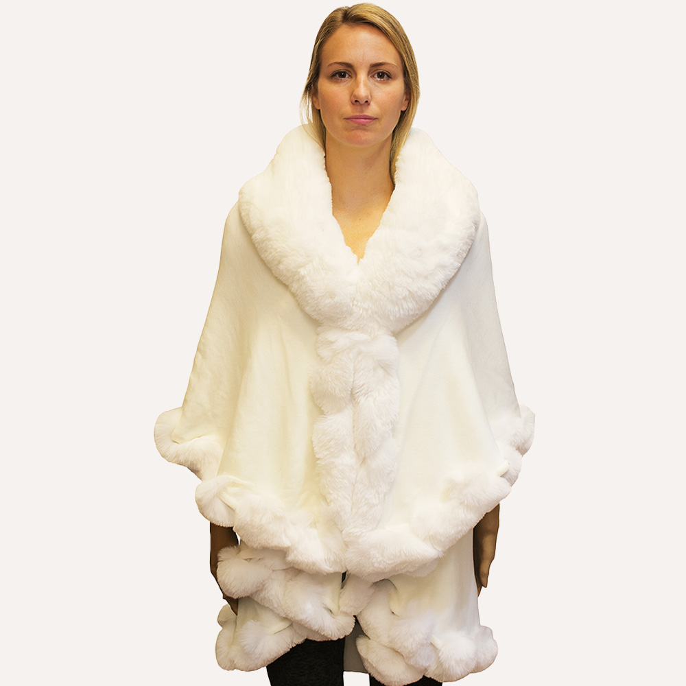 • Chic and cozy cape with luxurious faux fur trim. Perfect for layering on cold days while keeping an elegant silhouette.