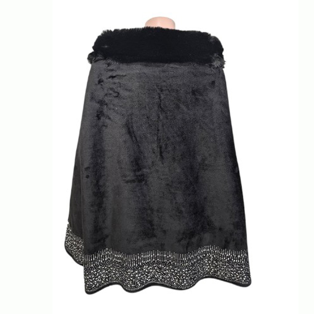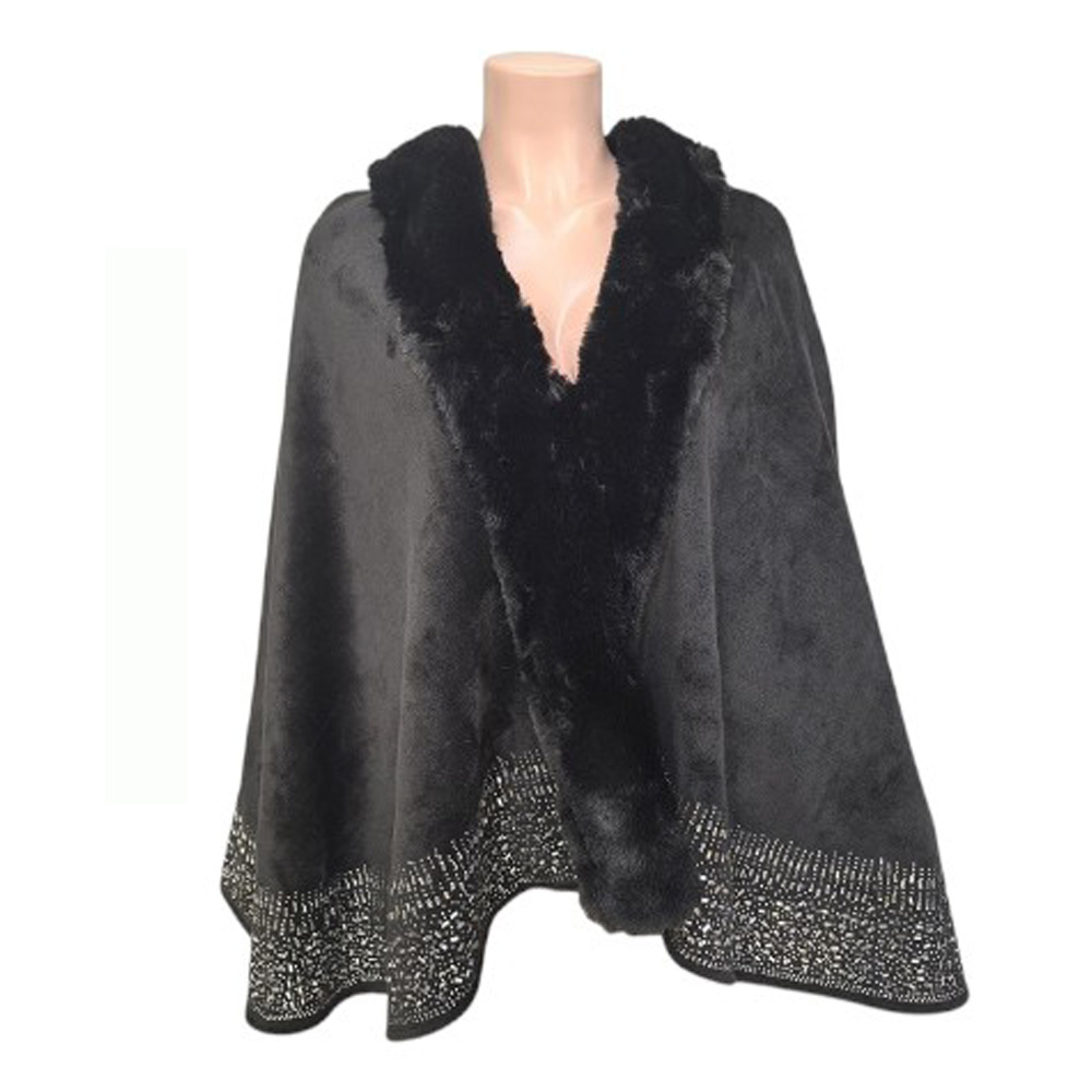 Faux Fur Trim Rhinestone Embellished Hem Poncho Shawl Faux Fur Trim Rhinestone Embellished Hem Poncho Shawl Faux Fur Trim Rhinestone Embellished Hem Poncho Shawl