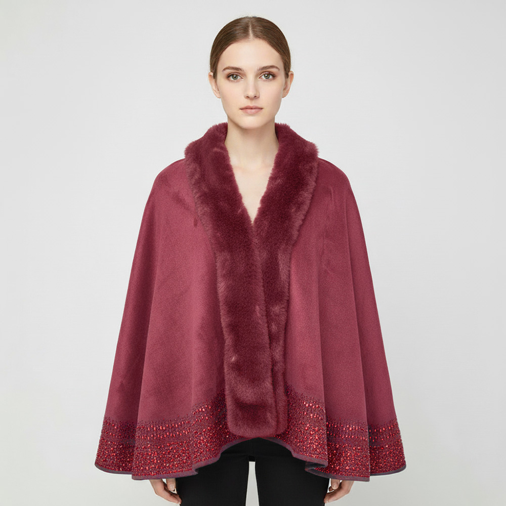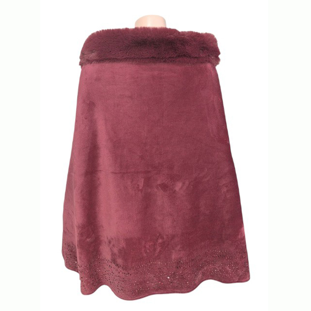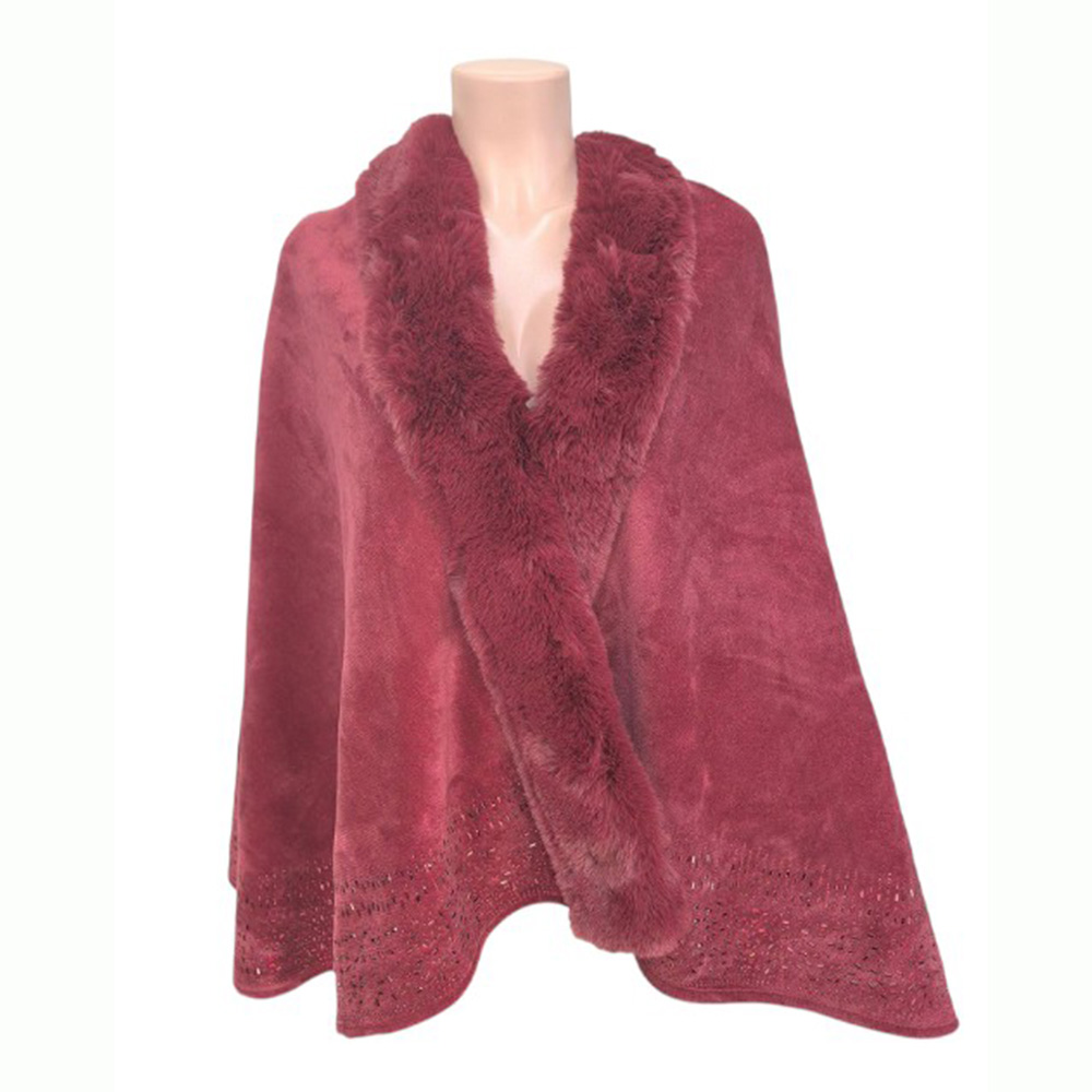 Faux Fur Trim Rhinestone Embellished Hem Poncho Shawl Faux Fur Trim Rhinestone Embellished Hem Poncho Shawl Faux Fur Trim Rhinestone Embellished Hem Poncho Shawl