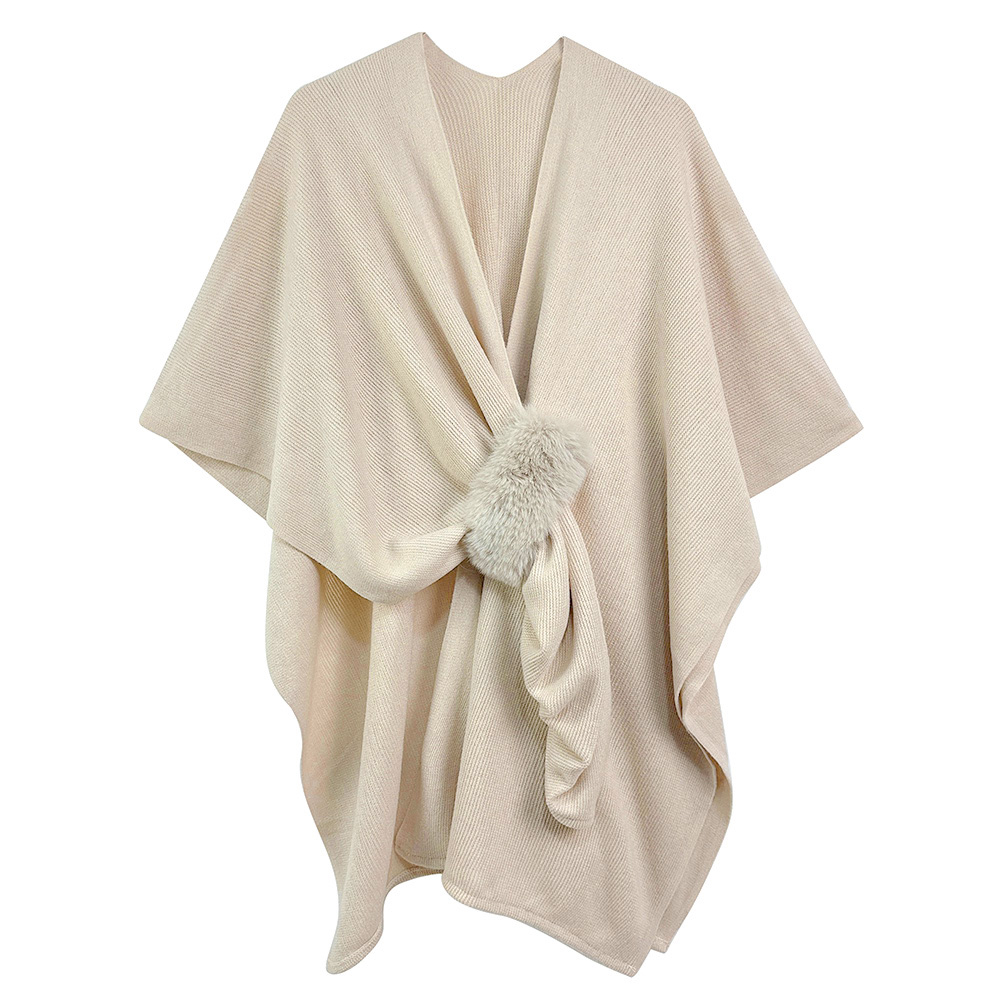 • Add a touch of elegance to your wardrobe with this chic open front cape featuring a soft drape and faux fur pom detail. Stylish and versatile, it’s perfect for layering over casual or dressy outfits, offering warmth, comfort, and a fashionable accent for any season or occasion.