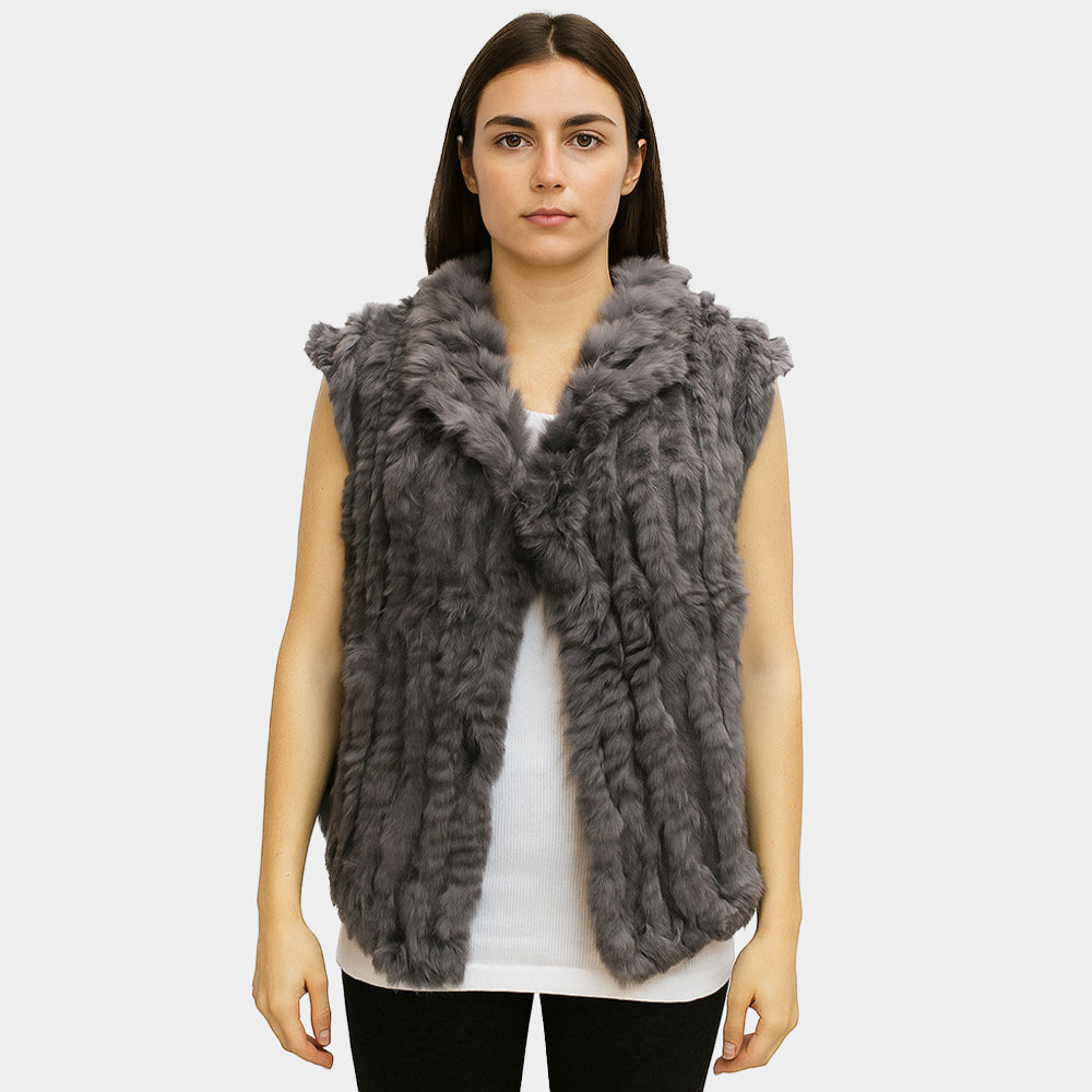 Details • Size : One Size • Material : 100% Faux Fur • This luxe textured sleeveless vest exudes elegance with its voluminous collar and rich, layered finish. Designed for warmth and sophistication, it adds instant depth to any outfit—perfect for pairing over casual or dressy looks to create a chic, statement-making ensemble.