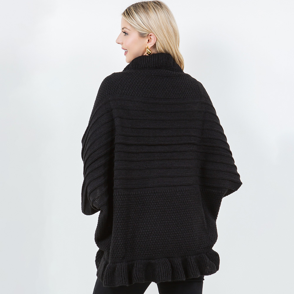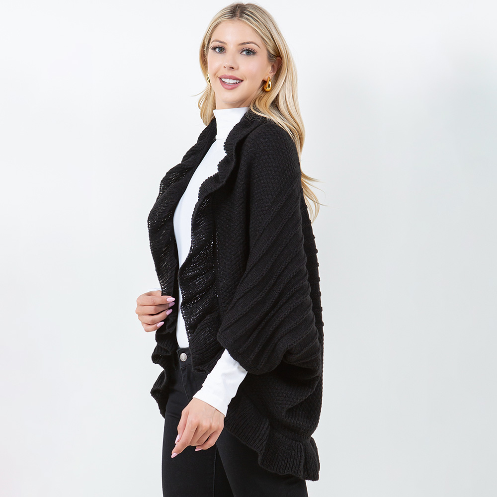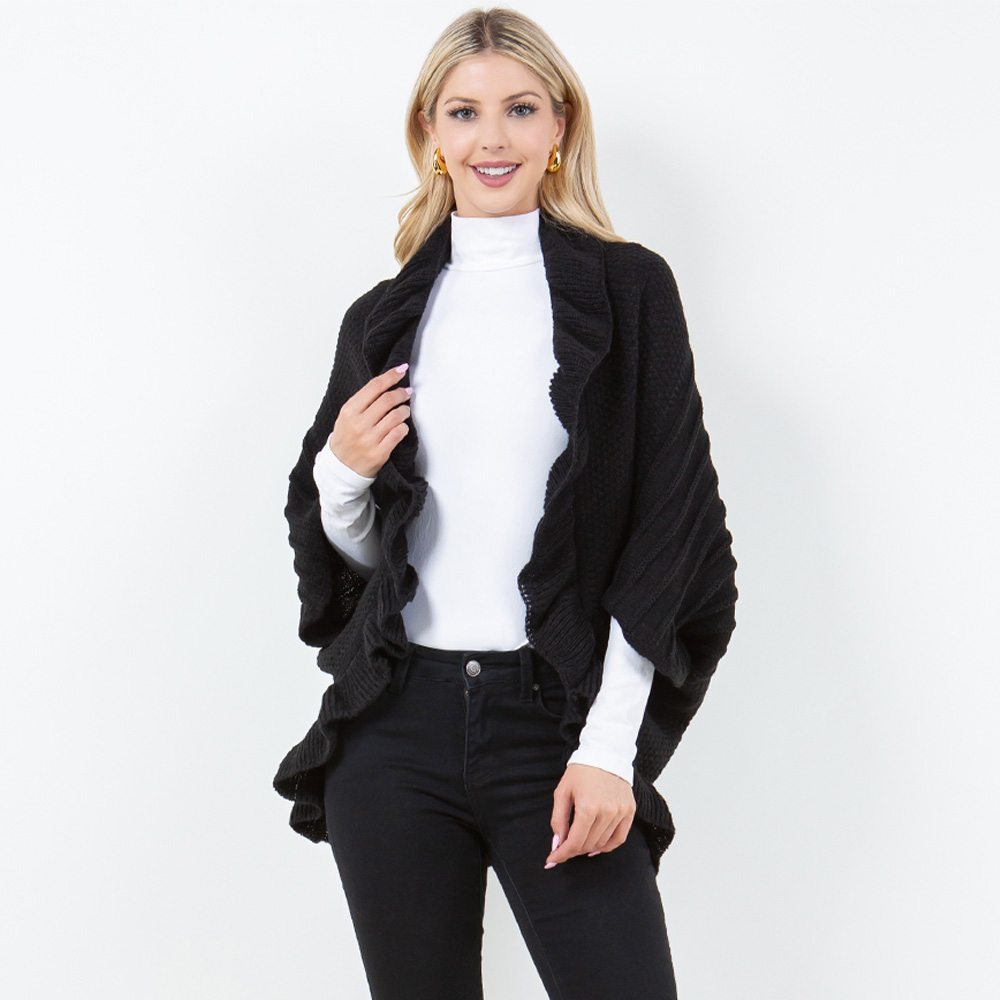 Open Front Ruffled Knit Shawl Wrap Poncho Open Front Ruffled Knit Shawl Wrap Poncho Open Front Ruffled Knit Shawl Wrap Poncho
