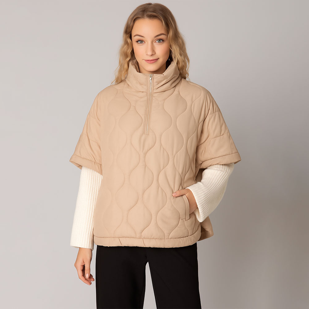 Quilted Short Sleeves Puffer Pullover Poncho Quilted Short Sleeves Puffer Pullover Poncho