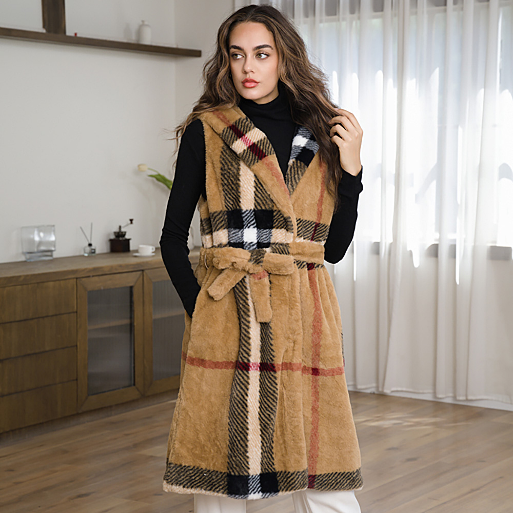 Details • Size : 26" X 39.3" • Material : 100% Acrylic • Stylish sleeveless vest with a classic plaid pattern and belted waist, perfect for layering in any season. Designed for a modern yet timeless look, this versatile piece brings comfort and sophistication to casual and chic outfits alike.