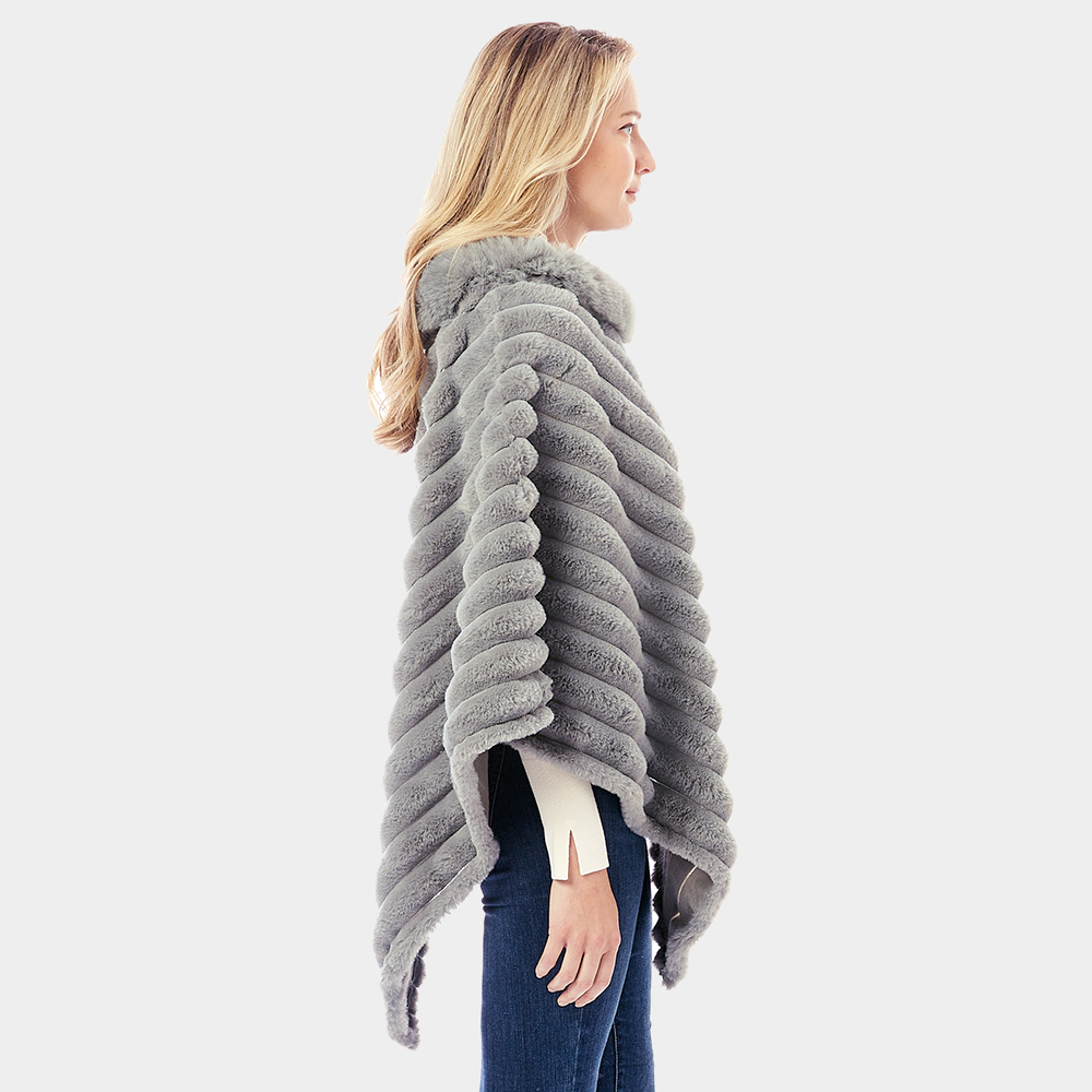 Soft Faux Fur Collar Poncho