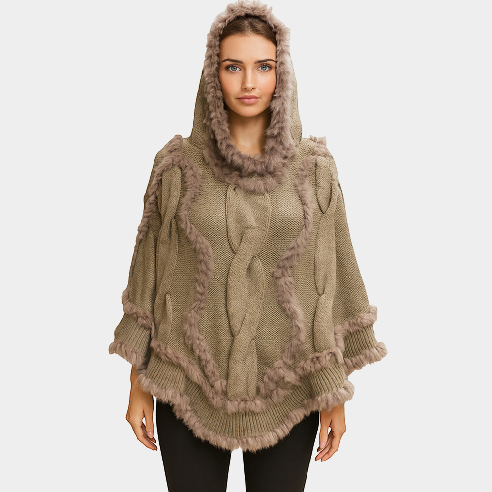 Soft Faux Fur Knitted Poncho