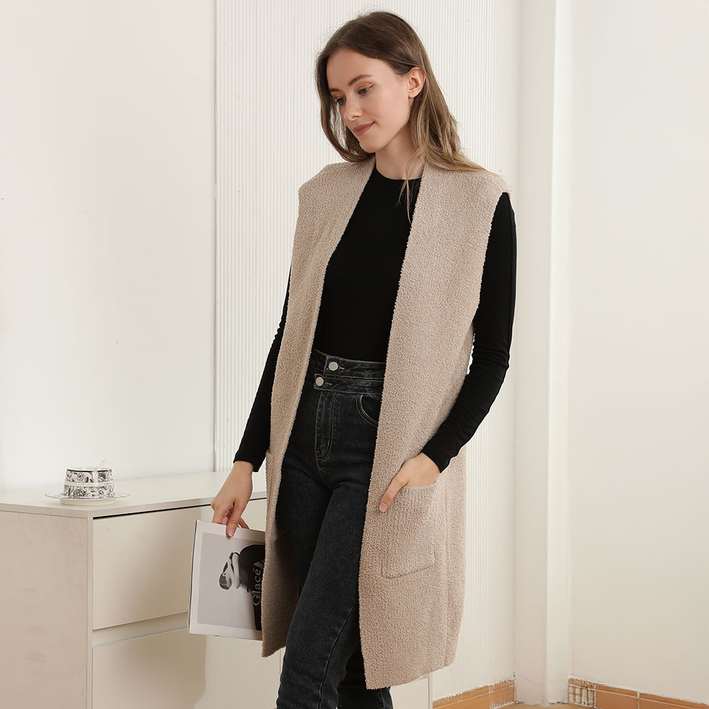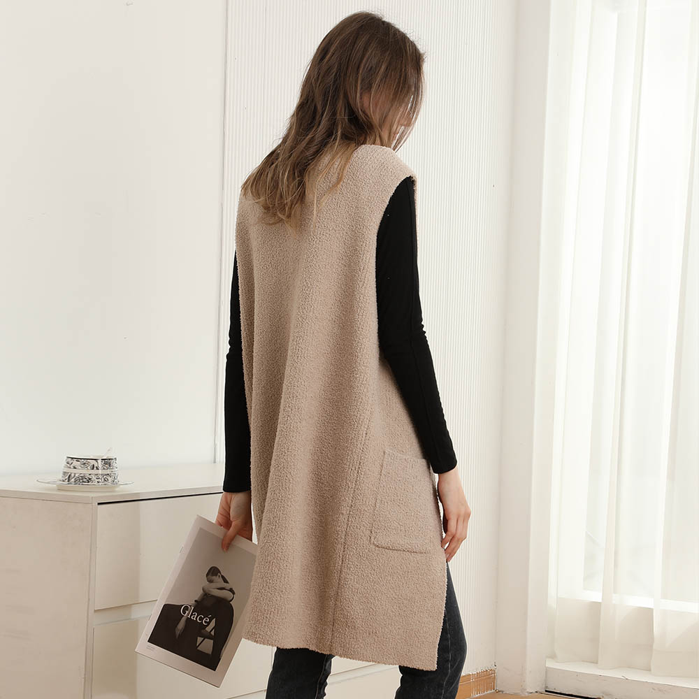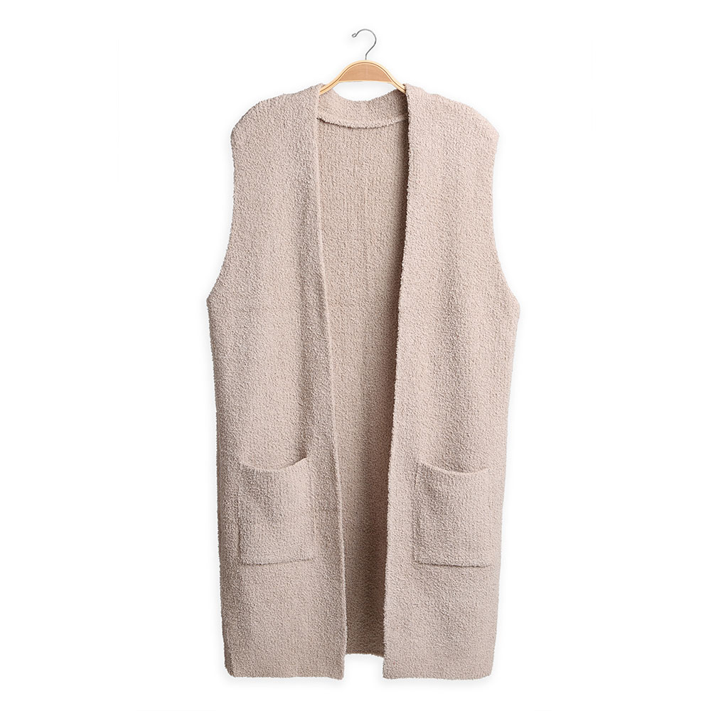 Details • Size : One Size • Material : 100% Poly.Microfiber • Layer effortlessly with this longline sleeveless vest, designed with an open front and roomy side pockets. Its relaxed fit and cozy texture make it a versatile piece for pairing with casual or chic outfits, adding comfort and style to any wardrobe.