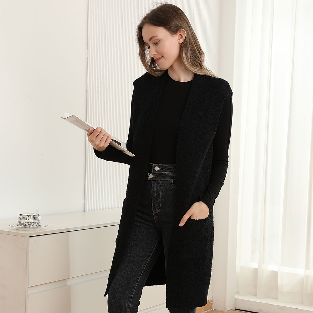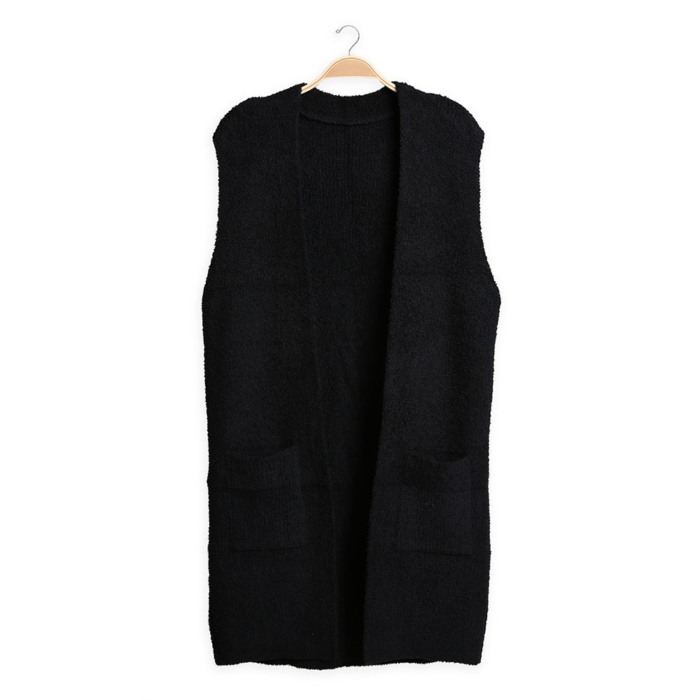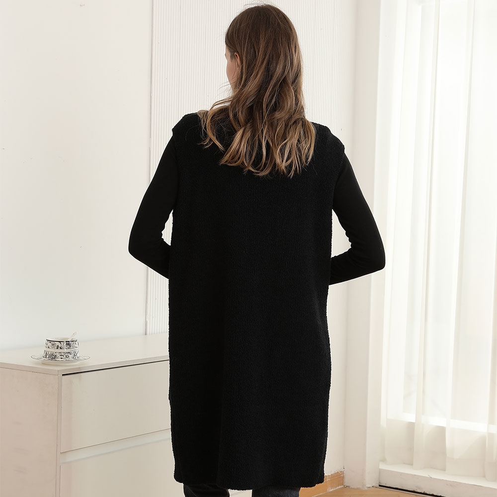• Layer effortlessly with this longline sleeveless vest, designed with an open front and roomy side pockets. Its relaxed fit and cozy texture make it a versatile piece for pairing with casual or chic outfits, adding comfort and style to any wardrobe.