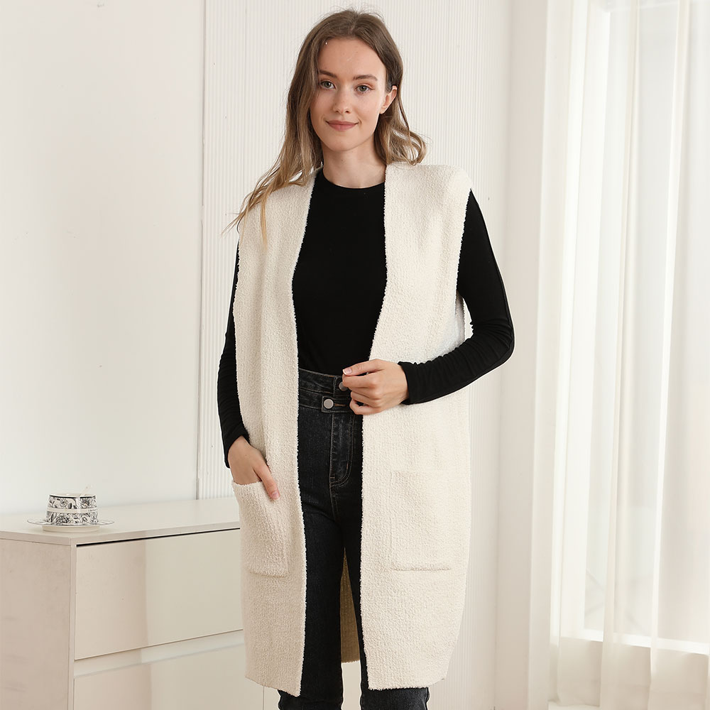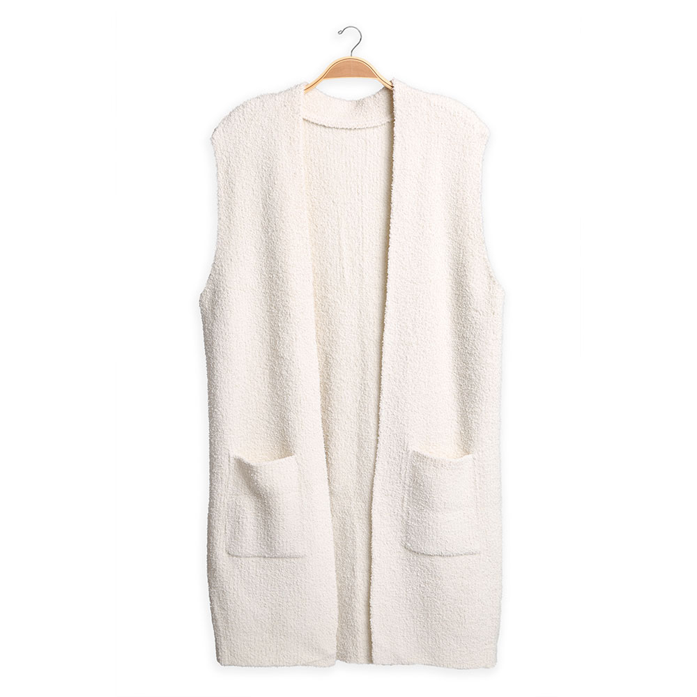 Details • Size : One Size • Material : 100% Poly.Microfiber • Layer effortlessly with this longline sleeveless vest, designed with an open front and roomy side pockets. Its relaxed fit and cozy texture make it a versatile piece for pairing with casual or chic outfits, adding comfort and style to any wardrobe.