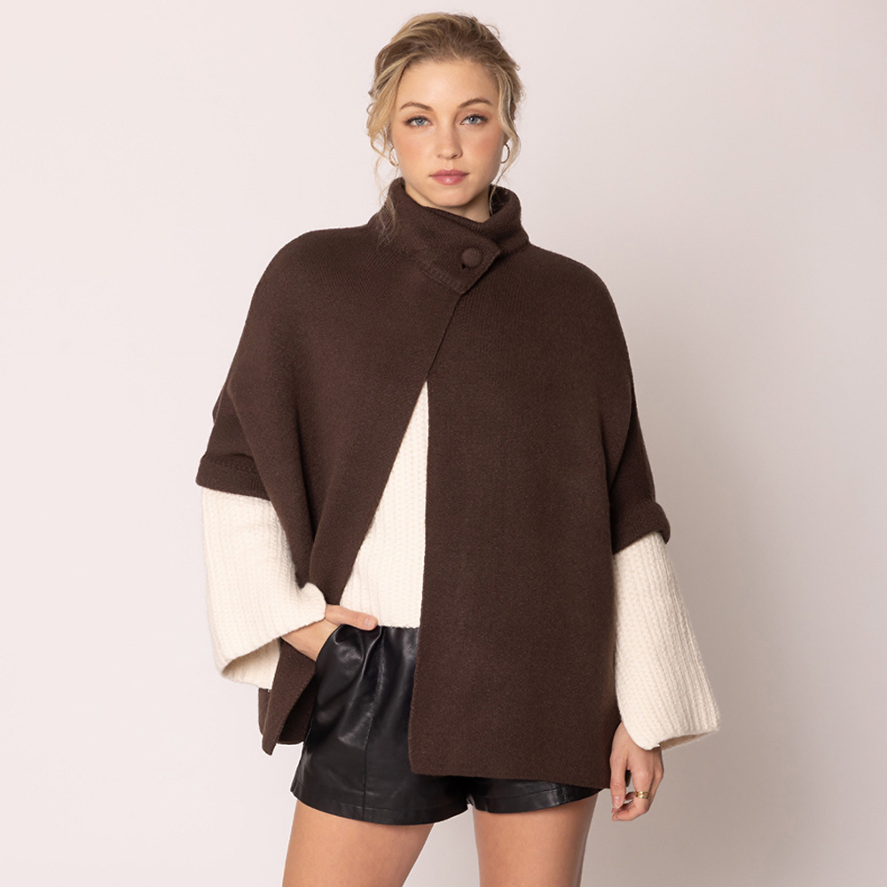 Details • Size : 30.7" X 26" L • Material : 100% Acrylic • Elevate your cold-weather style with this chic button-front cape. Designed with a high collar and relaxed drape, it layers effortlessly over any outfit, offering a polished look for work, travel, or casual wear.