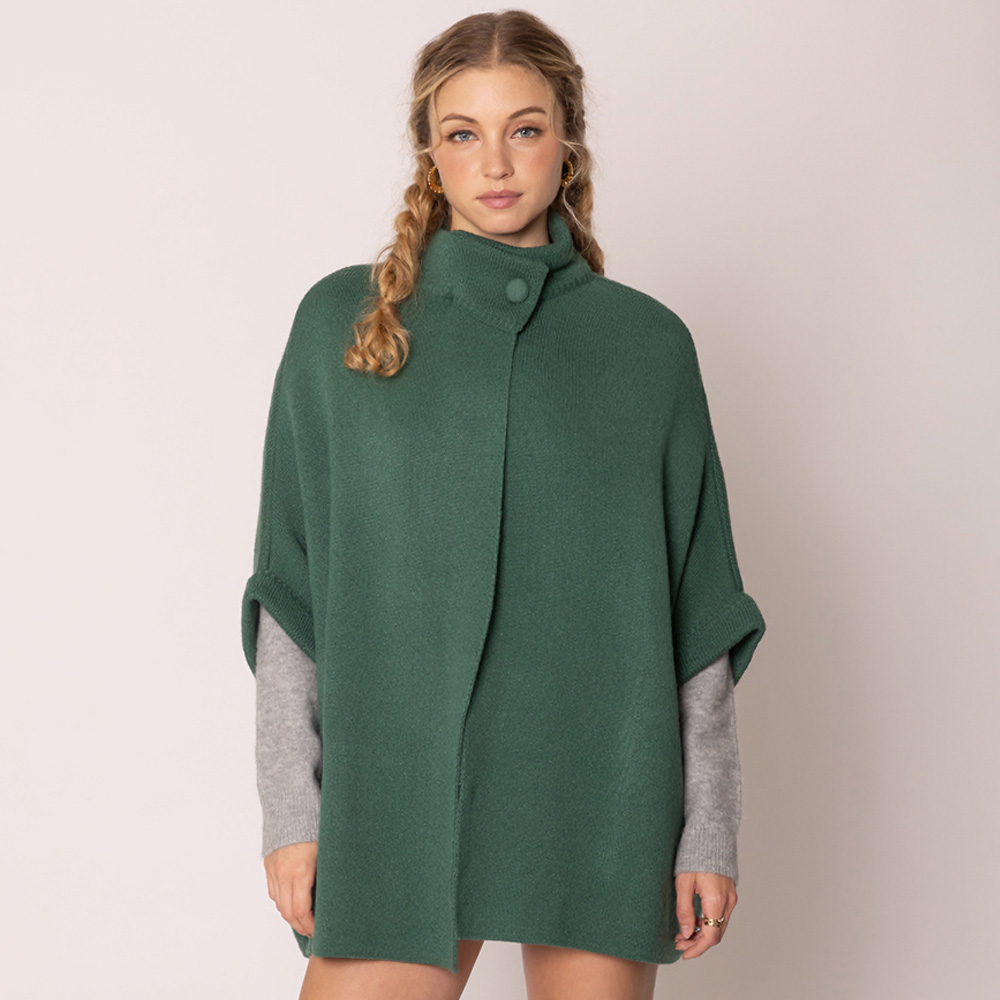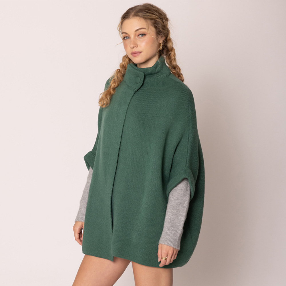 Details • Size : 30.7" X 26" L • Material : 100% Acrylic • Elevate your cold-weather style with this chic button-front cape. Designed with a high collar and relaxed drape, it layers effortlessly over any outfit, offering a polished look for work, travel, or casual wear.