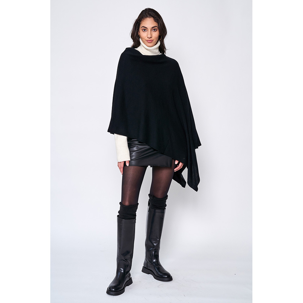 • Elevate your style with this classic asymmetrical poncho, designed for effortless layering. Its versatile drape and elegant silhouette make it the perfect wrap for both casual outings and refined occasions, offering timeless charm and cozy sophistication.