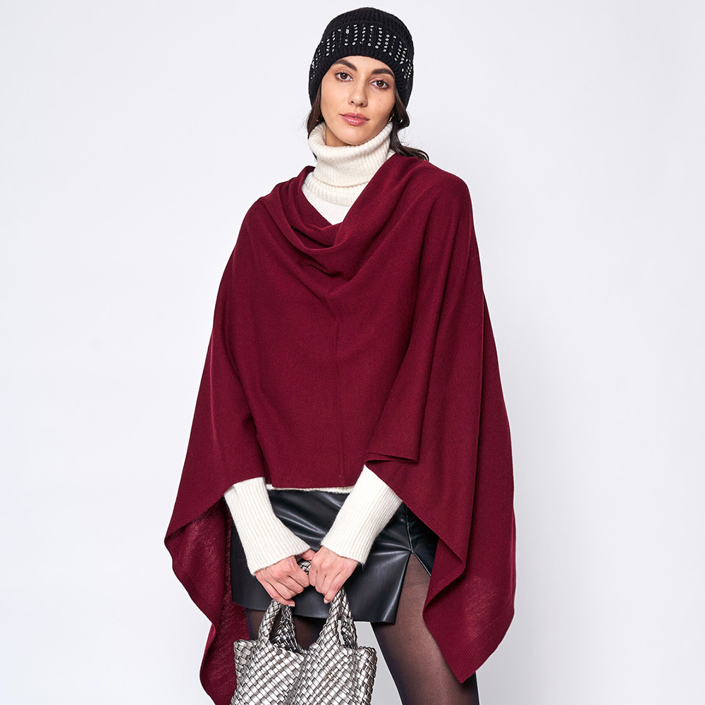 • Elevate your style with this classic asymmetrical poncho, designed for effortless layering. Its versatile drape and elegant silhouette make it the perfect wrap for both casual outings and refined occasions, offering timeless charm and cozy sophistication.