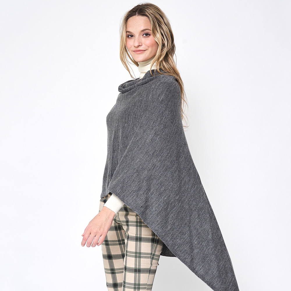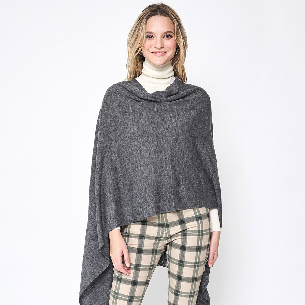 • Elevate your style with this classic asymmetrical poncho, designed for effortless layering. Its versatile drape and elegant silhouette make it the perfect wrap for both casual outings and refined occasions, offering timeless charm and cozy sophistication.