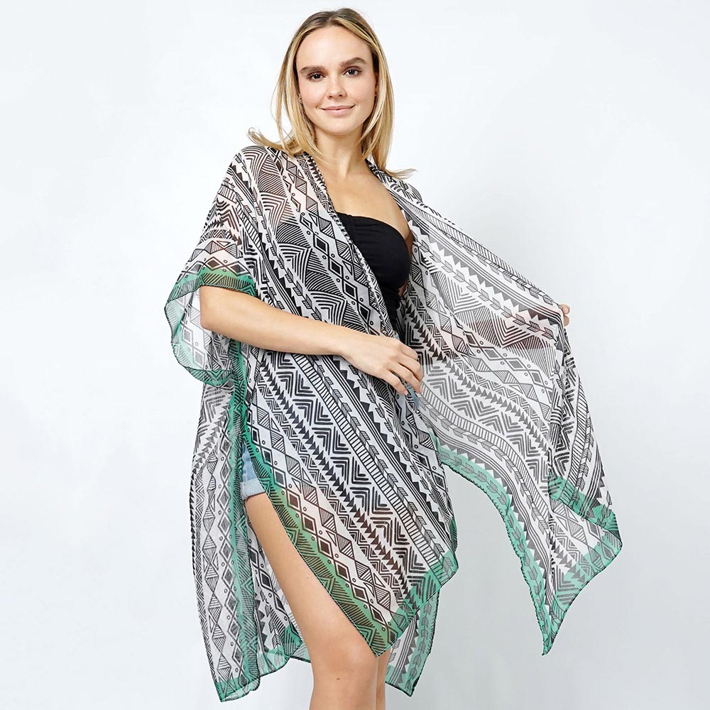 Geometric Pattern Printed Square Silky Satin Bandana Scarf