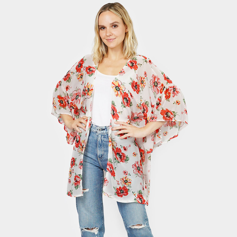 Flower Printed Cover Up Kimono Poncho