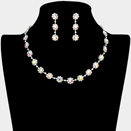 Flower Glass Stone Cluster Accented Evening Earrings