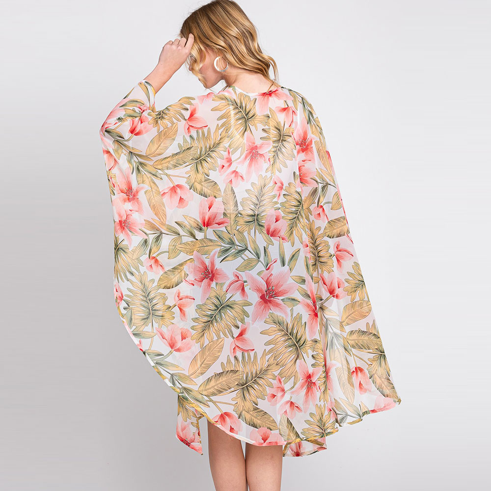 Tropical Leaves Print Shawl Cover-Up Kimono Poncho