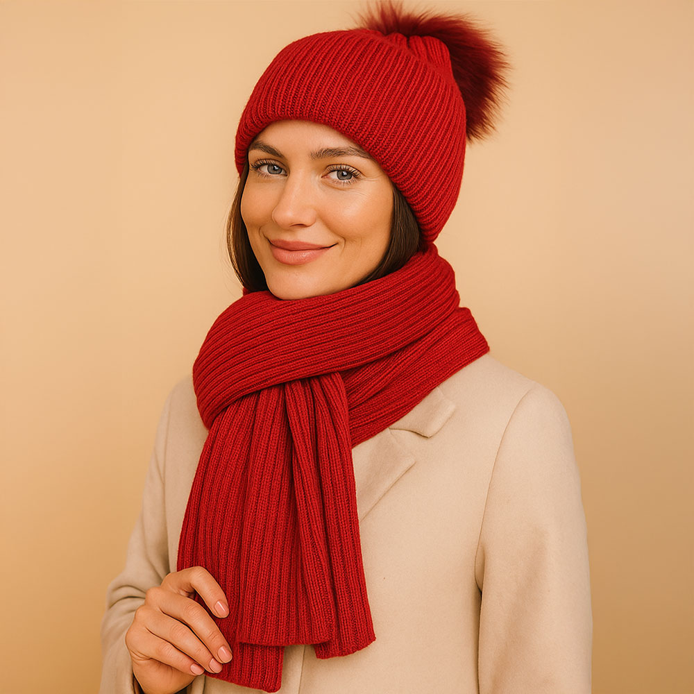 • Soft ribbed knit scarf and pom beanie set designed for cozy winter warmth. The matching textured pattern adds a stylish touch, while the plush pom accent elevates any cold-weather outfit. Perfect for everyday wear, gifting, or travel during chilly days.