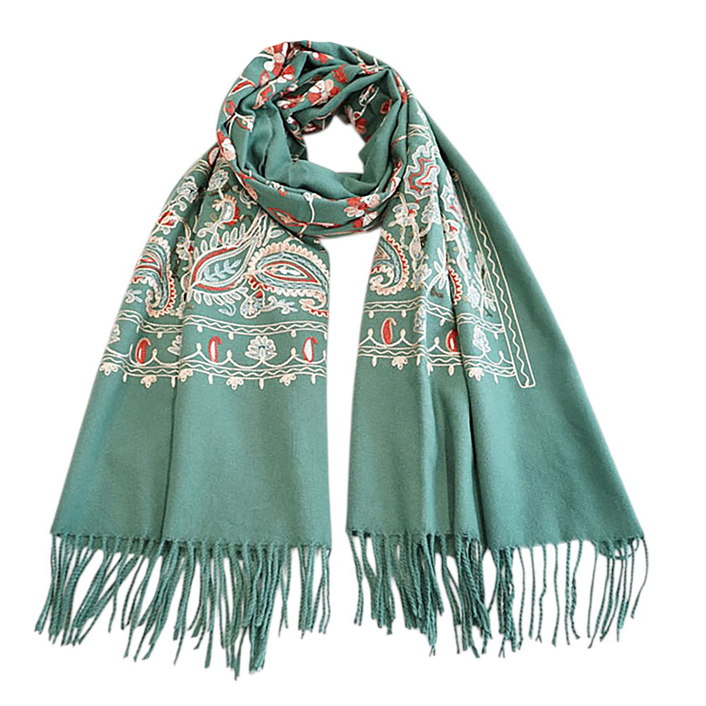 • Soft cashmere feel scarf with delicate floral embroidery and tassel trim. Lightweight yet warm, perfect for chilly stylish days.