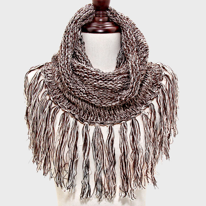 Fringe Drop Two Tone Knit Snood Scarf