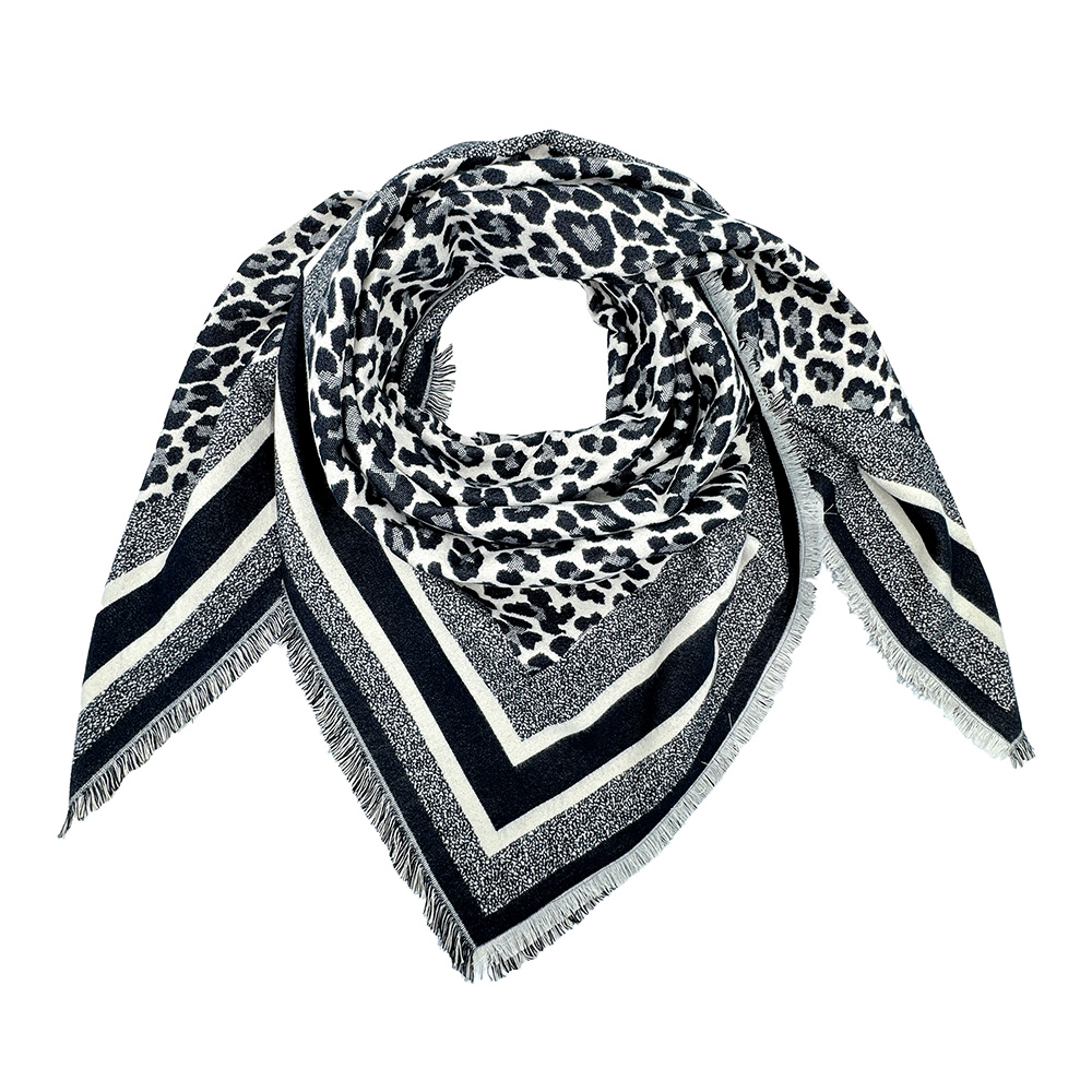 • Add a touch of sophistication with this animal print square scarf, styled with bold borders for a modern edge. Its versatile design allows you to wear it as a neck scarf, head wrap, or chic accessory, making it the perfect statement piece to elevate any outfit effortlessly.